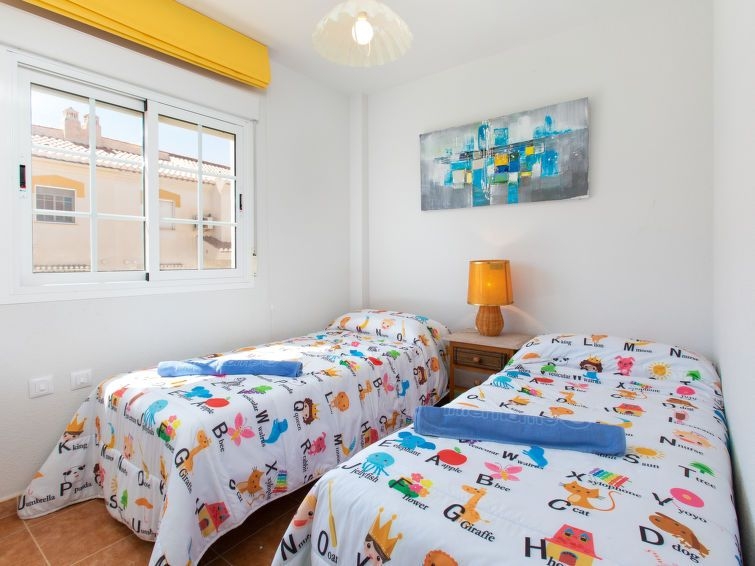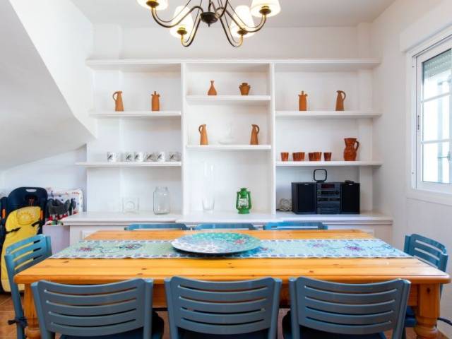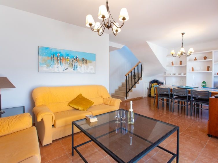 "Casa del Sol", casa adosada 5 estancias 182 m2 en 2 plantas. Con mobiliario sencillo y funcional: salón-comedor con TV digital y aire acondicionado. Salida a la terraza con ducha/WC. Cocina (horno, 4 placas de vitrocerámica, tostadora, hervidor de agua eléctrico, microondas, congelador, cafetera eléctrica). Ningún tipo de calefacción. Planta superior: 1 dorm. con 2 camas (90 cm, 190 cm de longitud), aire acondicionado. 1 dorm. con 2 camas (90 cm, 190 cm de longitud), aire acondicionado. 1 dorm. con 2 camas (90 cm, 190 cm de longitud), aire acondicionado. 1 dorm. con 1 cama de matrimonio (150 cm, 190 cm de longitud), aire acondicionado. 2 baño/WC. El alojamiento dispone de: lavadora, plancha, trona, cuna, secador de pelo. Internet (Wifi, gratis). VFT/GR/05884