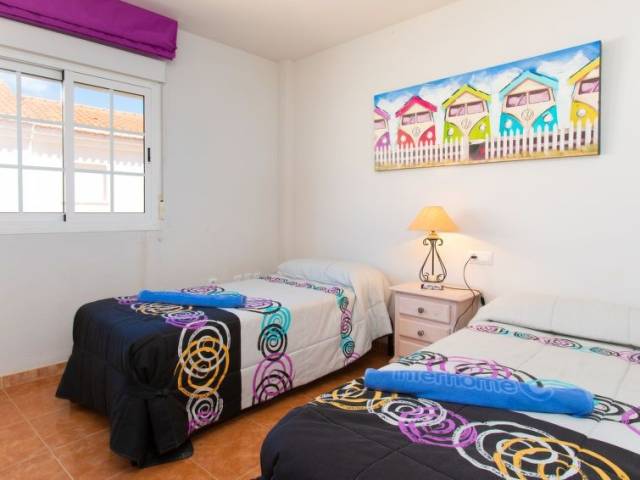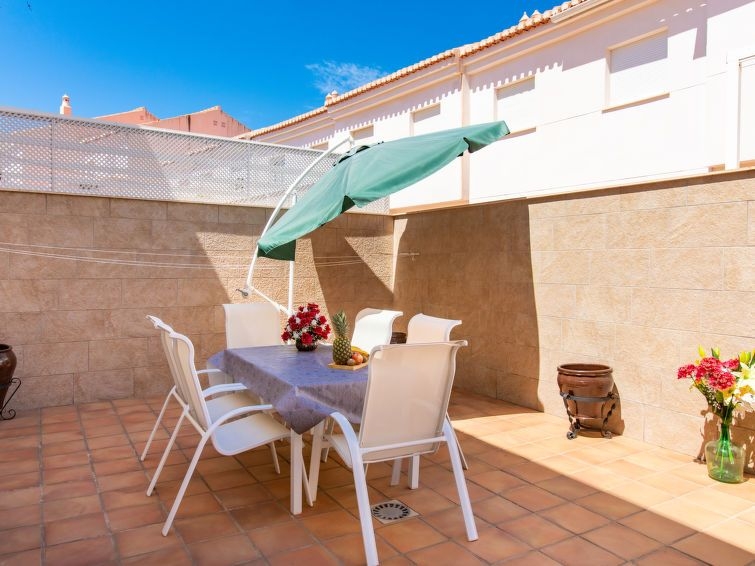 Salobreña: Casa adosada "Casa del Sol", bonita, agradable de 2 plantas. A 250 m del mar, a 250 m de la playa. Comunitario: jardín grande, piscina rectangular (20 x 10 m, Disponible por temporada: 17.Jun. - 15.Sep.). Ducha/WC en zona de piscina. Privado: patio. En el inmueble: lavadora. Atracciones en los alrededores: Motril, Almuñecar, Marinas del Este, La Herradura, Nerja, Frigiliana. Zonas de esquí populares fácilmente accesibles: Sierra Nevada. Zona de senderismo Alpujarras, Sierra Tejeda, Sierra Almijara. A tener en cuenta: equipamiento para bebés (incluido). El propietario no acepta grupos de adolescentes/jóvenes. Carga y descarga de equipaje posible en la casa de vacaciones.