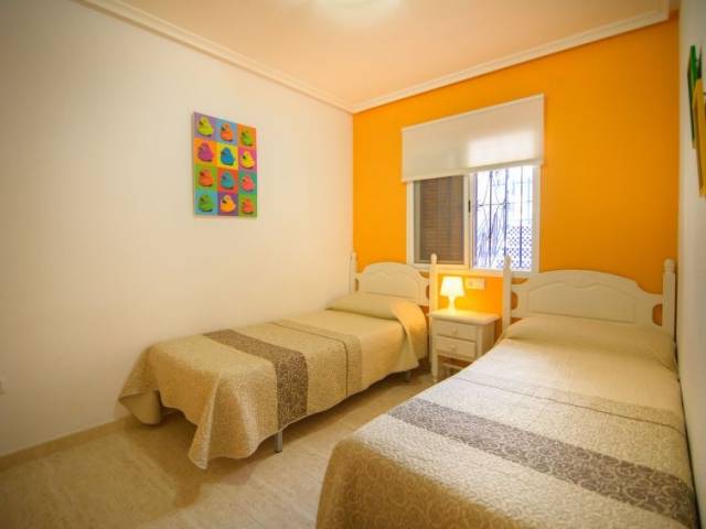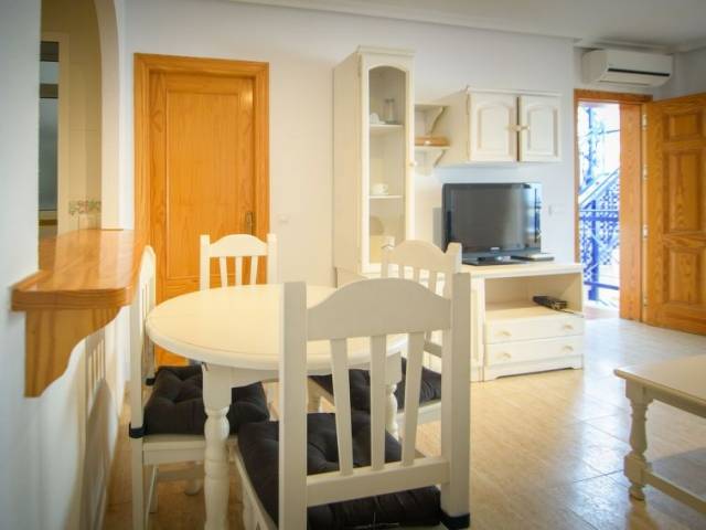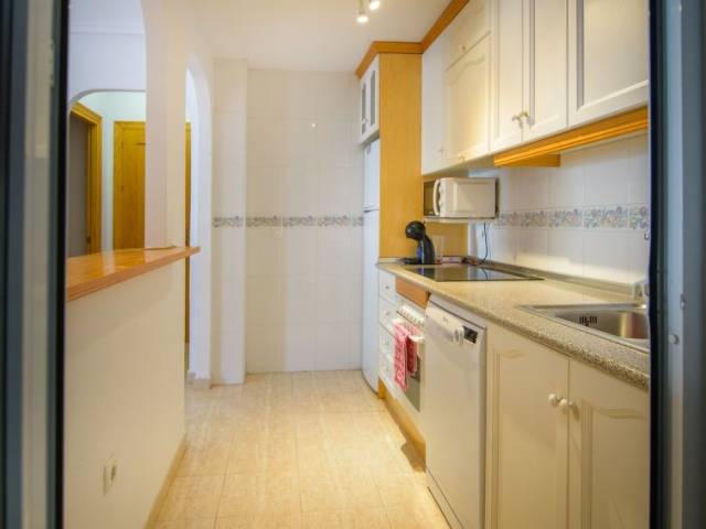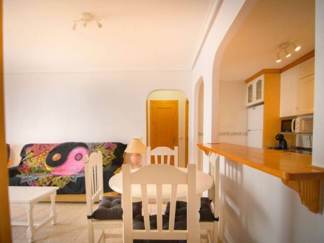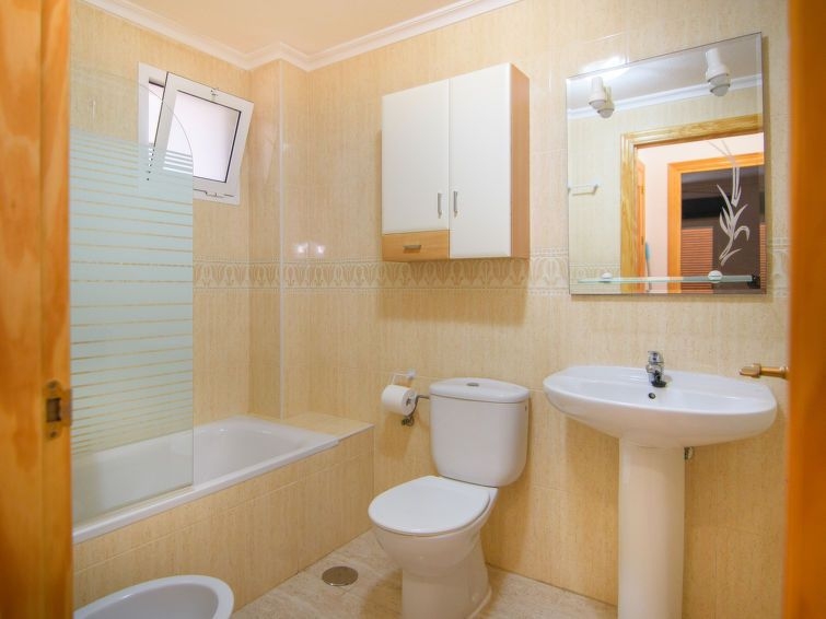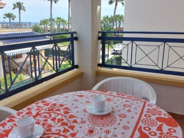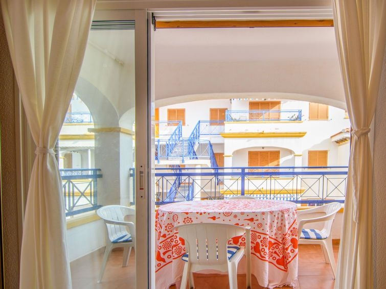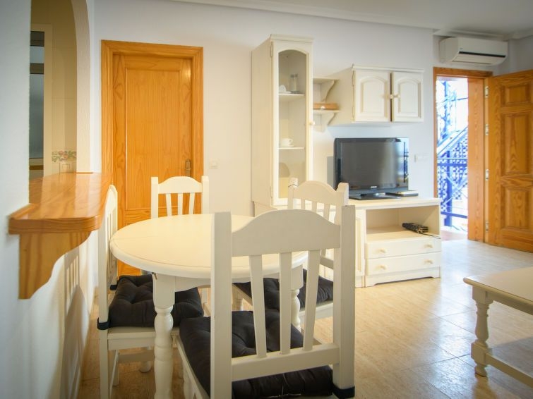 Vera Playa: Residencia "Veramar V - Seaview", agradable. En el distrito Puerto Rey, lugar tranquilo, soleado, a 200 m del mar, a 200 m de la playa. Comunitario: jardín con césped, piscina en forma de riñon (20 x 7 m, 100 - 200 cm de profundidad, Disponible por temporada: 01.May. - 30.Oct.). Piscina para niños, ducha exterior, aparcamiento junto a la casa, posibilidad de aparcamiento en la calle. Tienda de comestibles 800 m, supermercado 2 km, restaurante, bar, café 300 m, playa de arena "El Playazo, Puerto Real" 200 m. Puerto deportivo 3 km. A tener en cuenta: sin ascensor. Grupos de jóvenes sólo bajo petición. "Veramar V - Seaview", apartamento de 3 estancias 60 m2 en el 1° piso. Con mobiliario funcional y confortable: salón-comedor con mesa de comedor, TV digital, pantalla plana, aire acondicionado y bomba de calor, caliente. Salida a la terraza. 1 dorm. con 1 cama de matrimonio (150 cm, 190 cm de longitud), TV digital, pantalla plana y ventilador. 1 dorm. con 2 camas (90 cm, 190 cm de longitud). Cocina (horno, lavavajillas, 4 placas de vitrocerámica, tostadora, microondas, congelador, cafetera eléctrica). Baño/bidet/WC. Terraza. Muebles de terraza. Vista lejana al mar. El alojamiento dispone de: lavadora, plancha, secador de pelo. Internet (Wifi, gratis). Plaza de aparcamiento junto a la casa. A tener en cuenta: apartamento para no fumadores. VFT/AL/08871