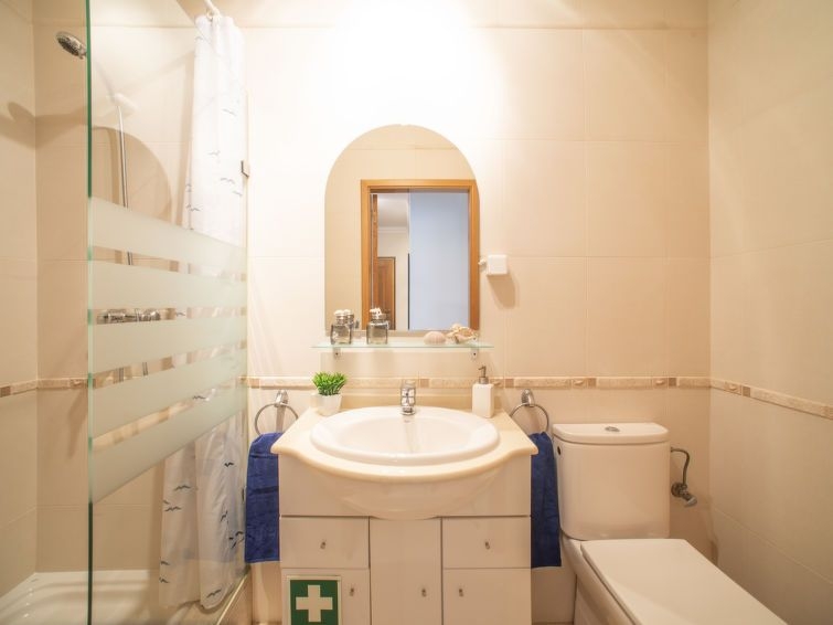 "Sunny Beach Casa-M", apartamento de 3 estancias 98 m2 en el 4° piso. Con mobiliario muy confortable y agradable: salón-comedor con mesa de comedor, TV, canales internacionales, pantalla plana, aire acondicionado y bomba de calor, caliente. Salida a la terraza. 1 dorm. con 1 cama de matrimonio (160 cm, 200 cm de longitud), aire acondicionado y bomba de calor, caliente. Salida al balcón. 1 dorm. con 2 camas (90 cm, 200 cm de longitud), aire acondicionado y bomba de calor, caliente. Salida al balcón. Cocina (horno, lavavajillas, 4 fuegos, tostadora, hervidor de agua eléctrico, microondas, congelador, cafetera eléctrica, Cápsulas de café (Dolce Gusto Not Incl)). Ducha/WC, media bañera/WC. Muebles de balcón. Vista parcial al mar. El alojamiento dispone de: lavadora, plancha, trona, cuna hasta 2 años. Internet (Wifi, gratis). Garaje. A tener en cuenta: adecuado para familias. Apartamento para no fumadores. Extintores. 65221/AL