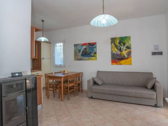 Apartamento de 3 estancias 77 m2, en la planta baja. Con mobiliario sencillo y confortable: salón-comedor con chimenea (sólo con función decorativa), TV, TV satélite y pantalla plana. Salida a la terraza. 1 dorm. doble. 1 dorm. con 2 camas. Rincón-cocina (4 fogones, horno, congelador) con mesa de comedor. Ducha/bidet/WC. Terraza pequeña cubierta. Barbacoa. Vista parcial al mar. El alojamiento dispone de: plancha, secador de pelo. A tener en cuenta: 1 mascota / perro. Entrada privada. Q2314