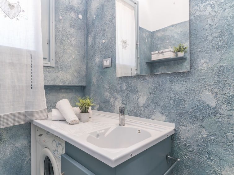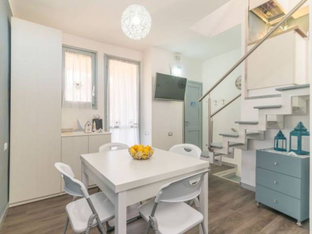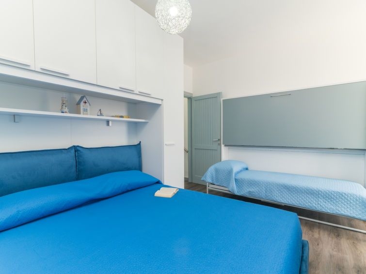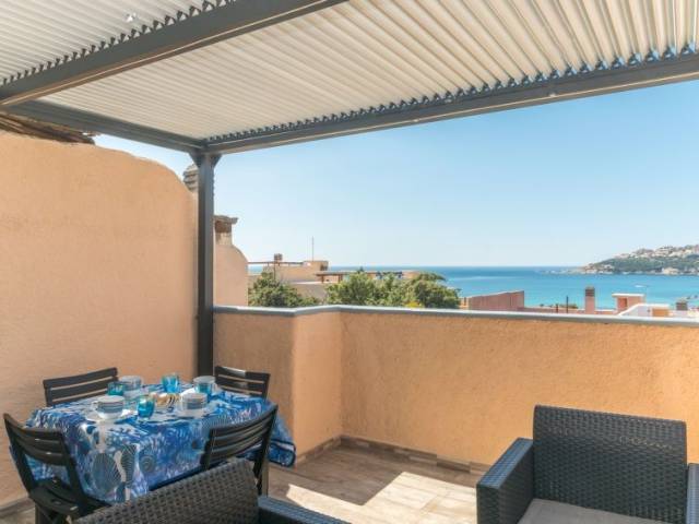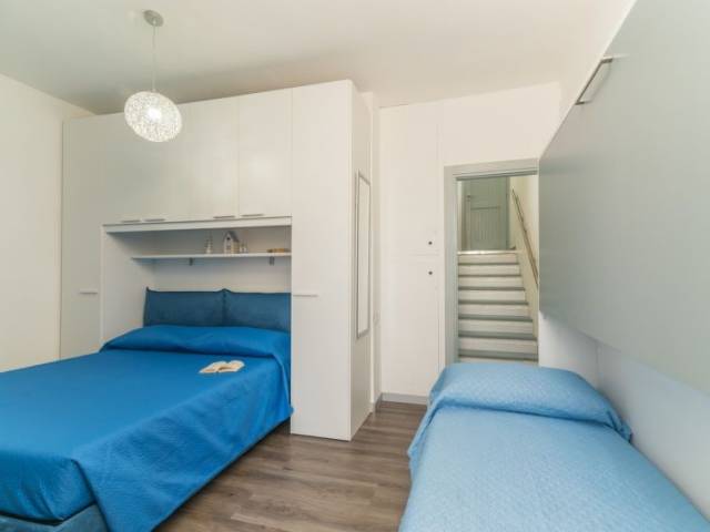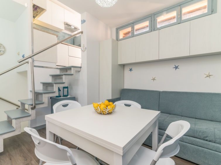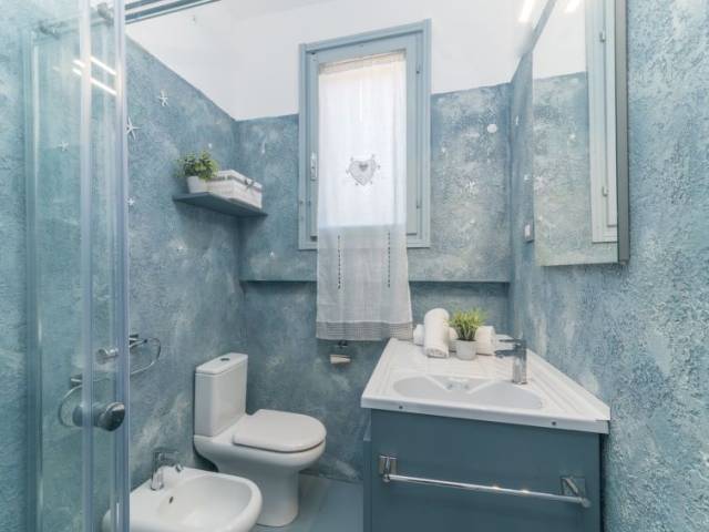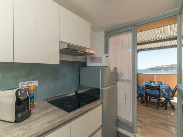 "Baia blu", apartamento de 3 estancias 45 m2 en 3 plantas. Con mobiliario confortable y agradable: salón-comedor con TV satélite. Salida al balcón. Ducha/bidet/WC. En planta inferior: 1 dorm. con 1 cama doble, 2 camas abatibles y ducha/bidet/WC. Salida al balcón. Planta superior: cocina abierta (4 Placas de inducción, microondas, cafetera eléctrica). Salida a la terraza. Ningún tipo de calefacción. 2 balcones, terraza parcialmente cubierta, jardín. Muebles de terraza. Vista bonita al mar y al paisaje. El alojamiento dispone de: lavadora, plancha, trona, cuna (extra), secador de pelo. A tener en cuenta: casa para no fumadores. IUN:R3445