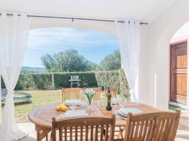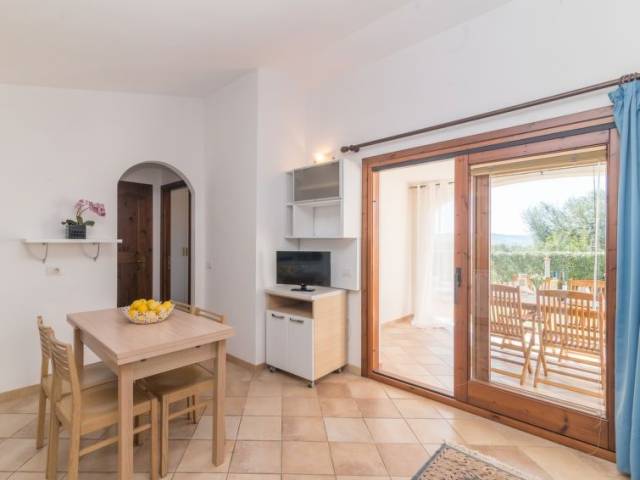 "Pandora", casa 2 estancias 40 m2. Con mobiliario confortable y agradable: salón-comedor con 1 sofá-cama doble, TV satélite, pantalla plana y aire acondicionado. Salida al jardín, a la terraza. 1 dorm. doble con TV satélite y pantalla plana. Rincón-cocina (4 fogones, horno, lavavajillas, tostadora, hervidor de agua eléctrico, congelador). Salida a la terraza. Ducha/bidet/WC. Muebles de terraza, barbacoa. El alojamiento dispone de: lavadora. Plaza de aparcamiento junto a la casa. Adecuado para familias. 1 mascota / perro. Q9458