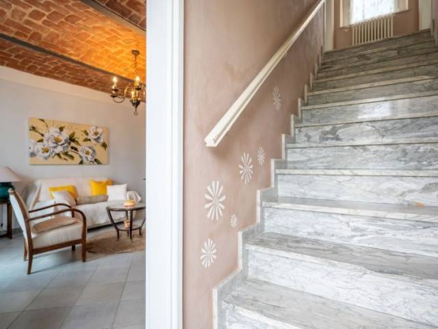 Casa adosada "Casa Margherita", muy agradable del año 1900, reformada en 2021, rodeada de prados y campos. En la periferia, a 3 km del centro de Asti, lugar céntrico, soleado, orientación oeste. Privado: terreno 2'000 m2 (vallada), jardín bonito con césped y plantas. Cenador (15 m2), terraza, muebles de jardín, barbacoa, aparcamiento (cubierto) junto a la casa en el mismo terreno. Supermercado 1 km, centro comercial 1 km, restaurante 3 km. El propietario vive en una parte independiente de la casa. "Margherita", casa adosada 3 estancias 120 m2 en 2 plantas. Con mobiliario muy bonito y agradable: salón-comedor con chimenea y TV. Salida a la terraza. Cocina (horno, 4 fuegos, tostadora, hervidor de agua eléctrico, microondas, congelador, cafetera eléctrica). WC separado. Planta superior: 1 dorm. con 1 cama doble. Salida al balcón. 1 dorm. con 2 camas. Salida al balcón. Baño/ducha/bidet/WC. Calefacción, aire acondicionado. Calefacción disponible desde el 01.10. al 15.04. Suelo de piedra natural. Terraza grande. Muebles de terraza. El alojamiento dispone de: lavadora, cuna hasta 2 años. Internet (Wifi, gratis). A tener en cuenta: entrada privada. No hay costos locales adicionales, excepto la tasa local de turismo. 00500500122