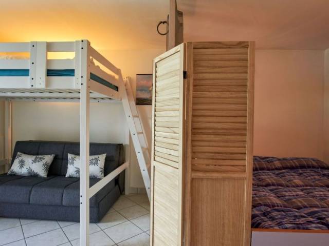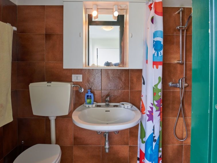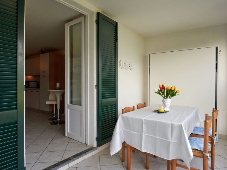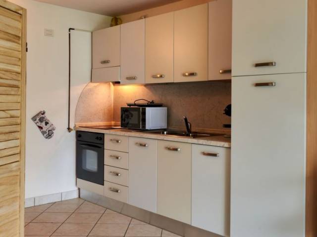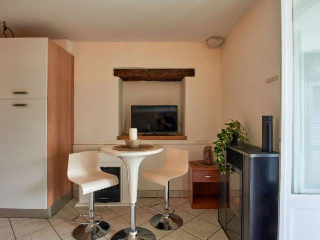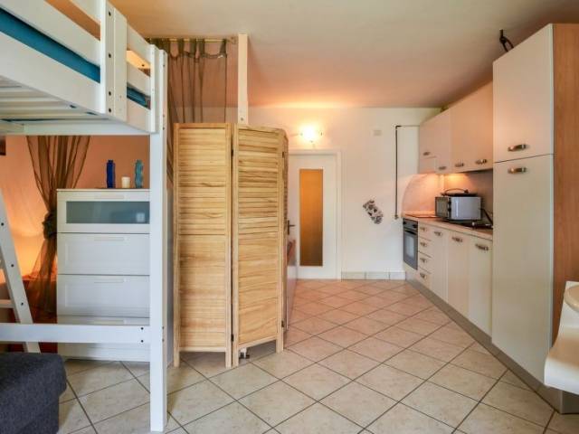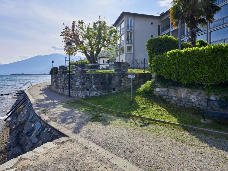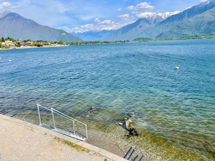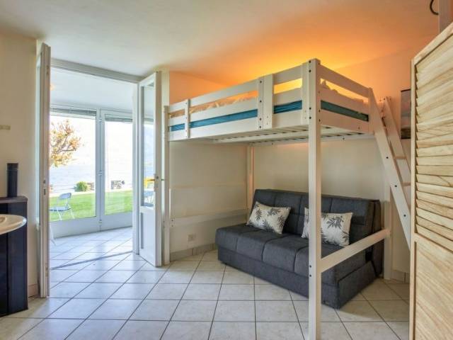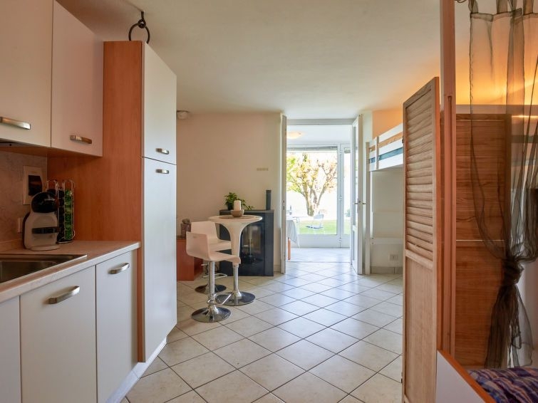 "By the lake" estudio 48 m2. Con mobiliario funcional: salón-dormitorio abierto con balcón acristalado, puerta corredera, ventanal con 1 sofá-cama (120 cm), 1 x 1 literas (160 cm, 200 cm de longitud), 1 cama doble, mesa de comedor y TV. Salida al jardín. Cocina abierta (horno, 4 Placas de inducción, Estufa de gas, tostadora, microondas) con pequena mesa de comedor. Ducha/WC. Ningún tipo de calefacción. Tumbonas (2). Vista espléndida al lago y a las montañas. Plaza de aparcamiento (1 coche). A tener en cuenta: apartamento para no fumadores. Entrada privada. CIR: 013107-LNI-00006