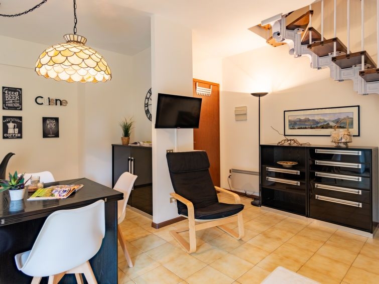 Casa adosada 3 estancias 80 m2 en 2 plantas. Parcialmente reformada en 2023, con mobiliario bonito: salón-comedor abierto con mesa de comedor y TV (pantalla plana). Salida al jardín. Cocina abierta (horno pequeño, lavavajillas, Estufa de gas, 4 fuegos, tostadora, hervidor de agua eléctrico, congelador, cafetera eléctrica) con pequeño barra americana. Planta superior: 1 dorm. doble con TV (pantalla plana). 1 dorm. con 2 camas. Ducha/bidet/WC. Calefacción eléctrica. Calefacción disponible desde el 15.10. al 15.04. Suelo de piedra natural. Jardín grande. Muebles de terraza, barbacoa, tumbonas (2). Vista parcial al lago y a las montañas. El alojamiento dispone de: Internet (Wifi, gratis). A tener en cuenta: casa para no fumadores. Permitido máximo 1 mascota / perro. 013249-LNI-00063