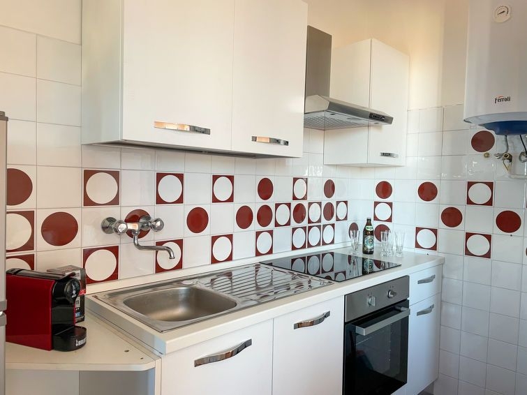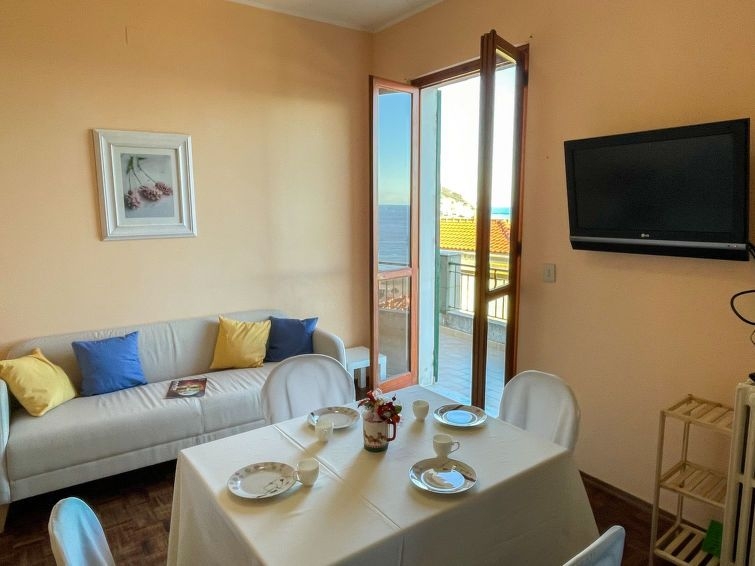 "Pietra Azzura", apartamento de 3 estancias 70 m2 en el 1° piso, orientación sur. Luminoso, reformado en 2022, con mobiliario bonito y agradable: 1 dorm. con 1 cama doble (1 x 160 cm). Salida a la terraza. 1 dorm. con 1 cama doble (1 x 160 cm). Salón-comedor con TV. Salida a la terraza. Pequeña cocina (horno, lavavajillas, 4 Placas de inducción, tostadora, hervidor de agua eléctrico, cafetera eléctrica). Baño/WC. Ningún tipo de calefacción. Terraza grande 20 m2. Muebles de terraza. Vista panorámica muy bonita al mar y a la localidad. El alojamiento dispone de: lavadora. Internet (Wifi, gratis). CITRA:009049-LT-1338
