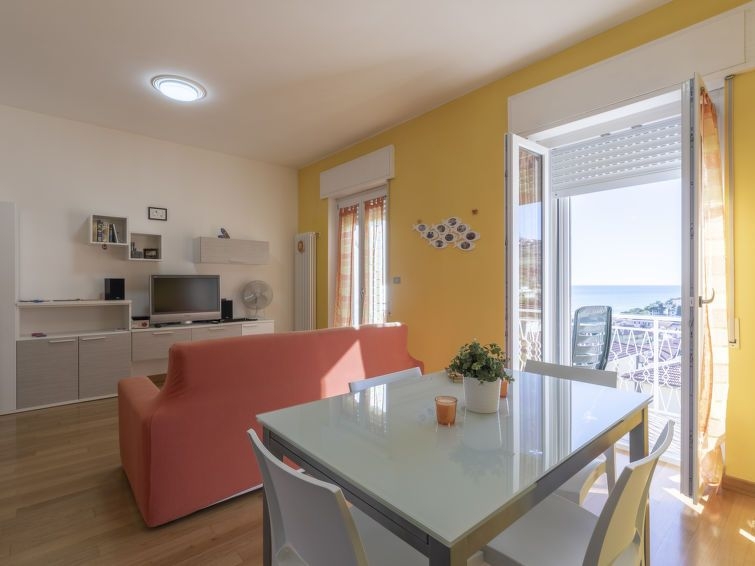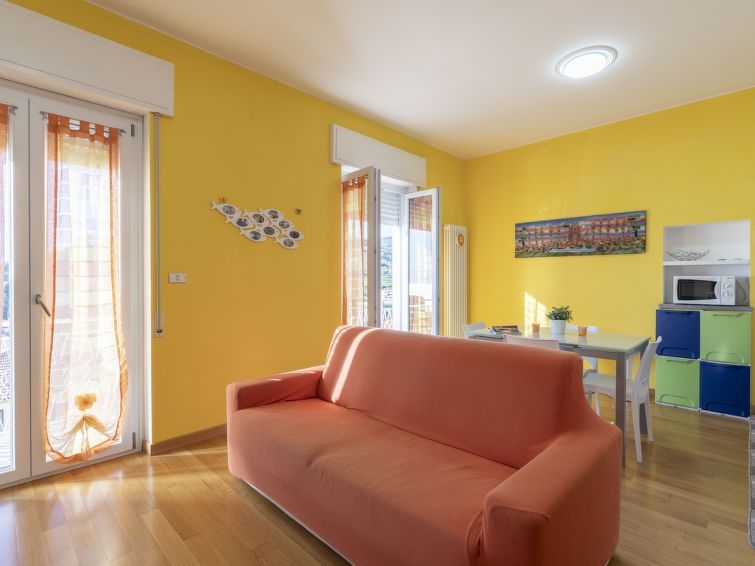 Casa de apartamentos agradable de 3 plantas. A 500 m del centro de San Lorenzo al Mare, a 8 km del centro de Imperia, a 8 km del centro de Riva Ligure, en una pendiente, a 700 m del mar. Acceso empinado durante 50 m hasta la casa. Acceso por escaleras (20 escalones) hasta la casa. Posibilidad de aparcamiento 50 m en la calle. Tienda de comestibles 700 m, supermercado, restaurante 500 m, bar 600 m, parada de autobús "Via Aurelia" 200 m, estación de tren "Imperia" 8 km. Caminos para bicicletas 200 m. A tener en cuenta: sin ascensor. Adecuado para familias. "Tramonto a casa di Matteo", apartamento de 2 estancias 70 m2 en el 2° piso. Luminoso, con mobiliario agradable: salón-comedor con 1 sofá-cama doble (160 cm, 200 cm de longitud), TV. Salida al balcón. 1 dorm. con 1 cama (90 cm, 200 cm de longitud), 1 plegatín (80 cm, 190 cm de longitud). Rincón-cocina (horno, 4 fuegos, tostadora, hervidor de agua eléctrico). Salida al balcón. Baño/bidet/WC. Calefacción de gas. Calefacción disponible desde el 01.11. al 31.03. Balcón 14 m2. Muebles de balcón. Vista muy bonita al mar. El alojamiento dispone de: lavadora, mosquitera, secador de pelo. Internet (Wifi, gratis). CITRA:008054-LT-0121