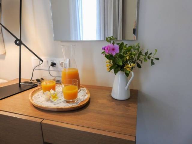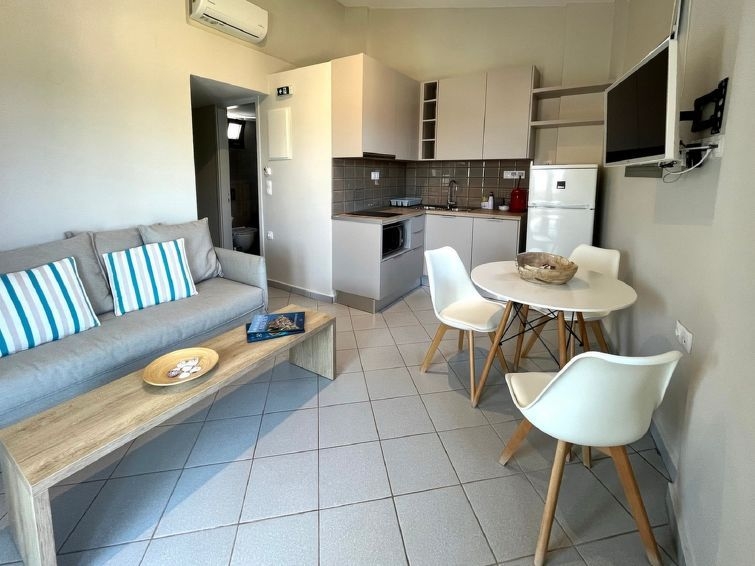"Epta", apartamento de 2 estancias 44 m2 en el 1° piso. Con mobiliario confortable y bonito: salón-dormitorio abierto con 2 sofás-cama y TV satélite (pantalla plana). Salida a la terraza. 1 dorm. doble con 1 cama doble. Salida al balcón. Cocina abierta (2 placas de vitrocerámica, microondas, cafetera eléctrica, Cápsulas de café (Tassimo) extra). Ducha/WC. Aire acondicionado. Balcón, terraza. Vista lateral al mar y al paisaje. El alojamiento dispone de: plancha, secador de pelo. Internet (Wifi, gratis). A tener en cuenta: adecuado para familias. Casa para no fumadores. 1056936