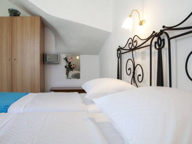 "Elvana", villa 3 estancias 70 m2 en 2 plantas. Con mobiliario confortable y bonito: salón-comedor abierto con mesa de comedor y TV (pantalla plana), DVD. Salida a la terraza. Cocina abierta (4 fogones, horno, hervidor de agua eléctrico, microondas, cafetera eléctrica). Baño/WC. Aire acondicionado. Planta superior: (escaleras sin barandilla) 1 dorm. doble con 1 cama doble. Salida al balcón. 1 dorm. doble con 2 camas. Baño/WC. Aire acondicionado. Balcón terraza parcialmente cubierta. Vista bonita al mar y al paisaje. El alojamiento dispone de: caja fuerte, plancha, secador de pelo. Internet (Wifi, gratis). Adecuado para familias. 0830K12000801001