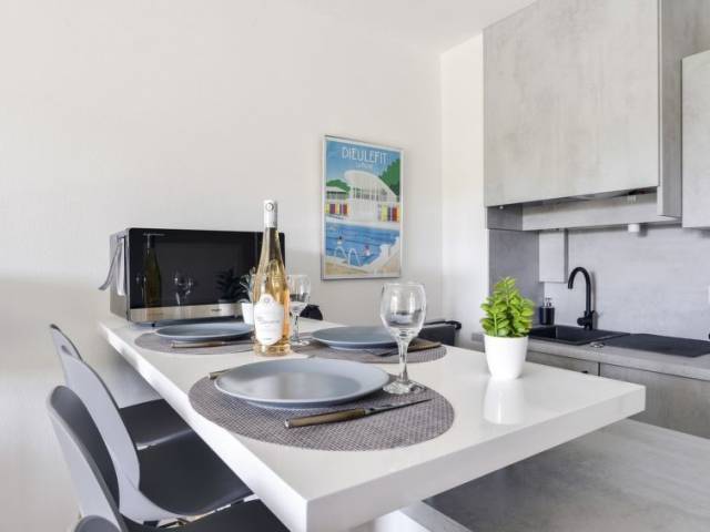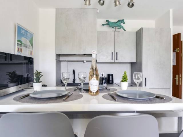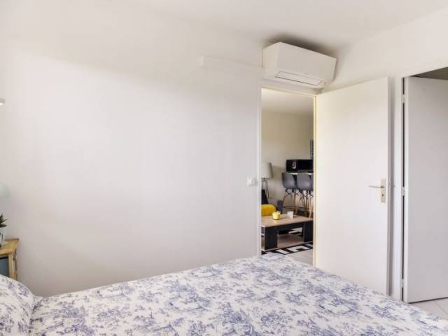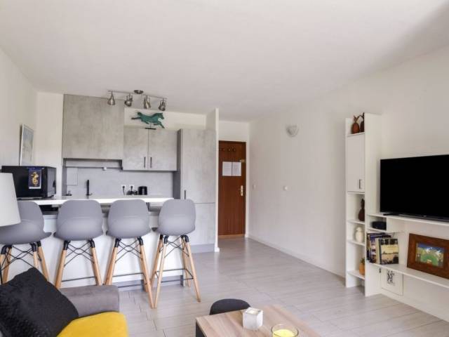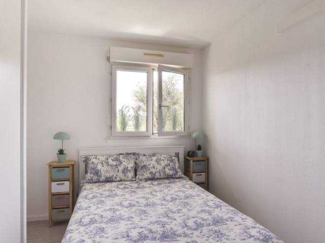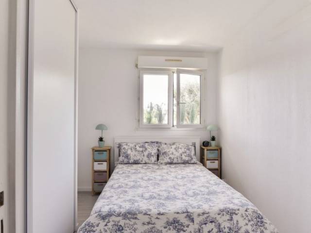 Apartamento de 2 estancias 47 m2 en el 2° piso, orientación sureste. Completamente reformado en 2021, con mobiliario muy confortable y moderno: salón-comedor 25 m2, grande con ventanal orientación sur con 1 sofá-cama doble (1 x 140 cm, 190 cm de longitud), TV (pantalla plana). Salida a la terraza. 1 dorm. 12 m2 con 1 cama de matrimonio (140 cm, 190 cm de longitud). Cocina abierta (2 Placas de inducción, tostadora, hervidor de agua eléctrico, microondas, congelador). Ducha/WC. Calefacción eléctrica, aire acondicionado. Terraza 10 m2, orientación sur. Muebles de terraza. Vista al jardín. El alojamiento dispone de: lavadora, plancha. Internet (Wifi, gratis). Garaje n. 13 (1 coche), altura 200 cm, ancho 220 cm. A tener en cuenta: aparcamiento para coches pequeños. 1 mascota pequeña / perro. Detector de humo. Oferta de un particular según el art. 155, IV del CGI. 06088021344AK