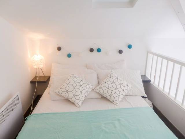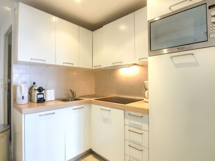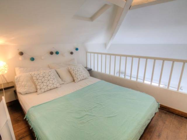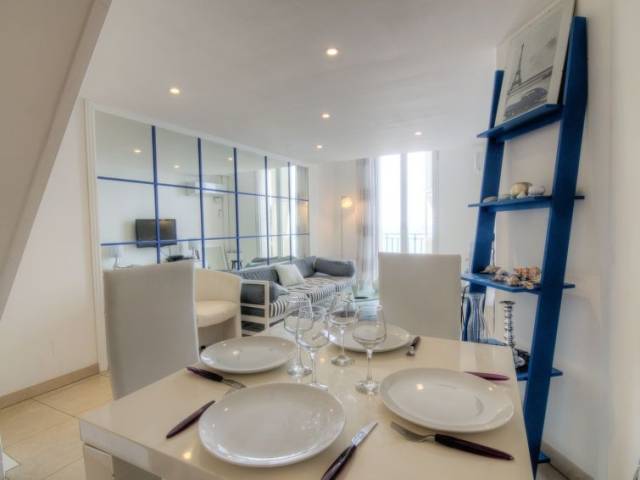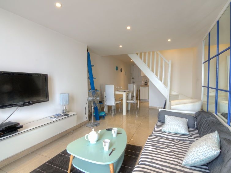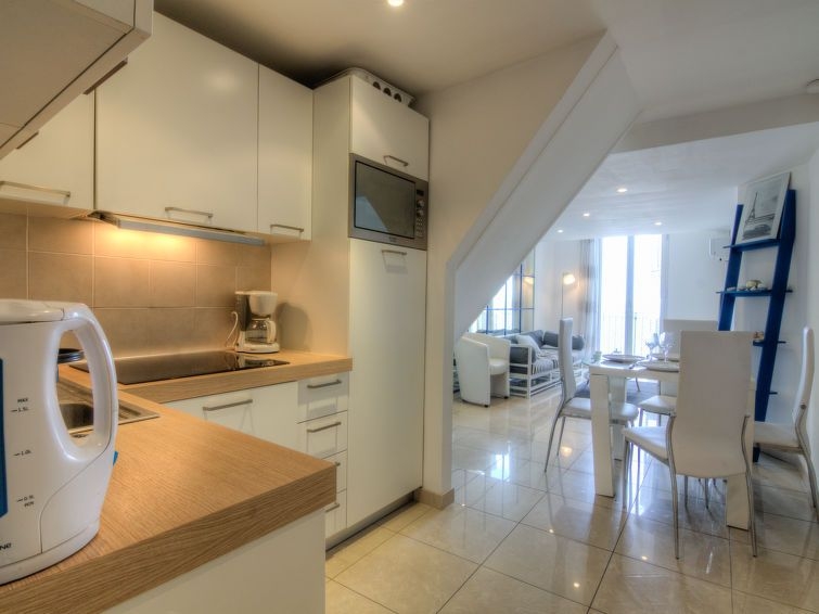 Apartamento en dos niveles 3 estancias 53 m2 en el 3° piso, orientación sur. Parcialmente abuhardillado, con mobiliario sencillo y funcional: salón-comedor con mesa de comedor y TV (pantalla plana). Salida al balcón. Cocina abierta (lavavajillas, 3 placas de vitrocerámica, tostadora, hervidor de agua eléctrico, microondas, congelador, cafetera eléctrica, Cápsulas de café (Nespresso) extra). Salida al balcón. Ducha/WC. Calefacción, aire acondicionado. Buhardilla: 2 dorm., abuhardillados, cada habitación con 1 cama de matrimonio (140 cm, 190 cm de longitud). WC separado. Balcón pequeño, orientación sur. Vista panorámica al mar. El alojamiento dispone de: lavadora, plancha, secador de pelo. Internet (Wifi, extra). A tener en cuenta: sin ascensor. 06088003832JQ