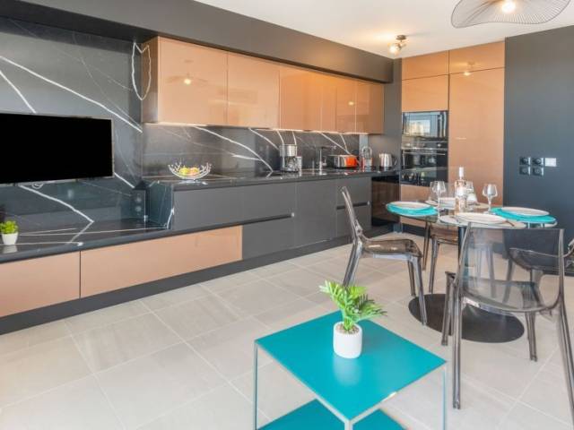"Le Grey Pearl", apartamento de 2 estancias 40 m2 en el 3° piso. Luminoso, con mobiliario bonito y moderno: salón-comedor con ventanal con 1 sofá-cama doble (140 cm, 190 cm de longitud), TV (pantalla plana). Salida a la terraza. 1 dorm. 12 m2, grande con 1 cama de matrimonio (160 cm, 190 cm de longitud). Salida a la terraza. Cocina abierta (horno, lavavajillas, 4 Placas de inducción, tostadora, hervidor de agua eléctrico, microondas, congelador, cafetera eléctrica, Cápsulas de café (Nespresso) extra). Salida a la terraza. Ducha/WC. Calefacción, aire acondicionado. Terraza grande 28 m2, orientación este y orientación sur. Muebles de terraza, tumbonas. Vista a la localidad. El alojamiento dispone de: lavadora, plancha, secador de pelo. Internet (Wifi, gratis). Garaje n. 207 NIVEAU -2 (2 Coches). A tener en cuenta: detector de humo. 06027017706AK