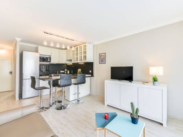 Apartamento de 2 estancias 34 m2 en el 1° piso. Completamente reformado, con mobiliario confortable y bonito: salón-comedor con 1 sofá-cama doble (140 cm), TV (pantalla plana), aire acondicionado. Salida a la terraza. 1 dorm. con 1 cama doble (160 cm). Cocina abierta (horno, lavavajillas, 4 placas de vitrocerámica, microondas, cafetera eléctrica). Ducha/WC. Aire caliente. Terraza 7 m2. Muebles de terraza. El alojamiento dispone de: lavadora. Internet (Wifi, gratis). A tener en cuenta: detector de humo. 06029004557WF