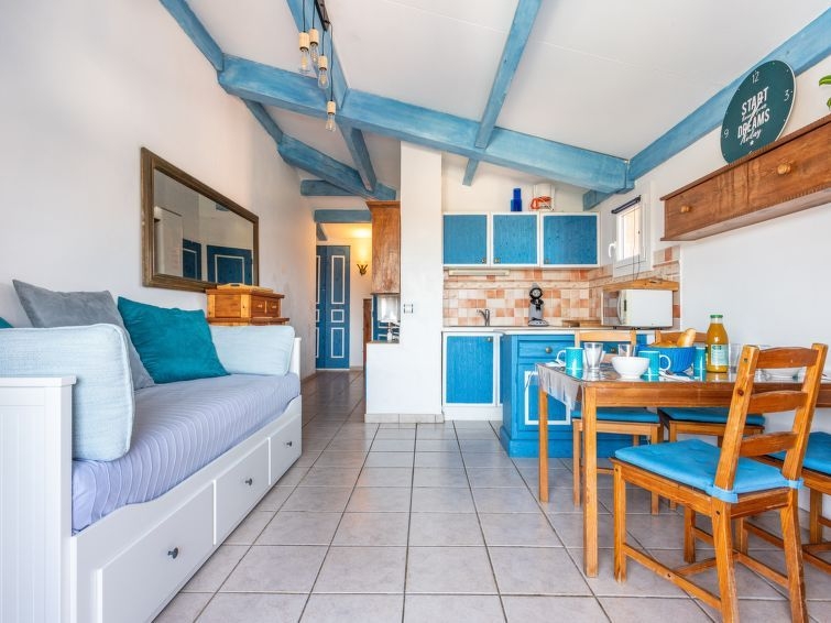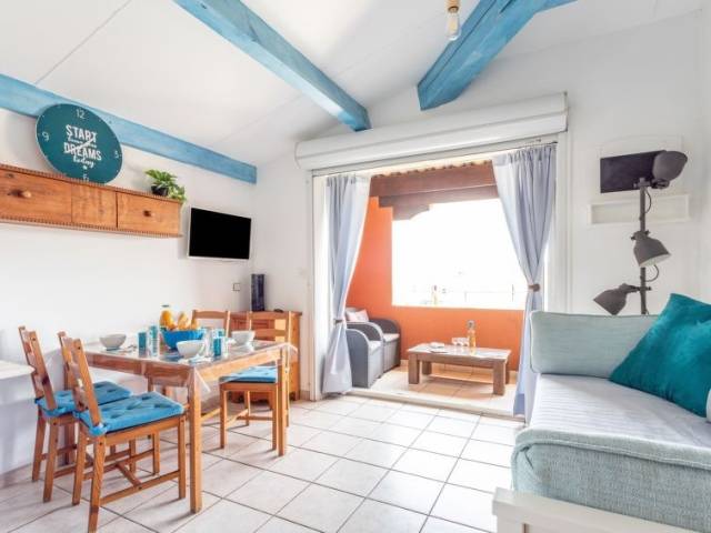 Apartamento de 2 estancias 30 m2 en el 2° piso. Con mobiliario muy bonito: salón-comedor con 1 cama-nido (2 pers. 2 x 80 cm, 190 cm de longitud), TV (pantalla plana). Salida a la terraza. 1 dorm. con 1 cama doble. Rincón-cocina (2 placas de vitrocerámica, microondas). Ducha/WC. Calefacción eléctrica. Terraza 6 m2. Muebles de terraza. Vista espléndida al paisaje y al puerto. El alojamiento dispone de: Internet (Wifi, extra). Plaza de aparcamiento n. 30. A tener en cuenta: detector de humo. 8306800047576