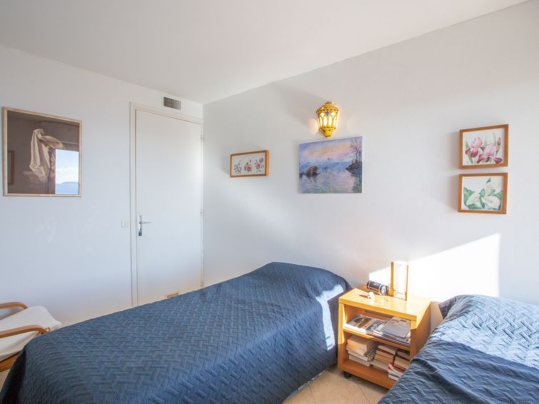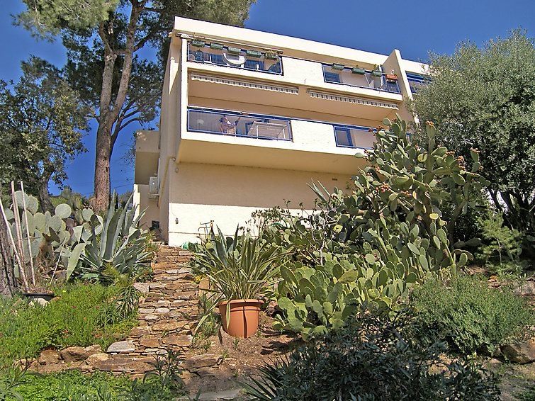 Apartamento de 3 estancias 60 m2, en planta baja elevada, orientación sur. Con mobiliario confortable y bonito: salón-comedor con TV (pantalla plana), equipo de música y aire acondicionado. Salida a la terraza. 1 dorm., abierto con cortina con 2 camas (90 cm, 200 cm de longitud). Salida a la terraza. 1 dorm. con 1 cama de matrimonio (140 cm, 200 cm de longitud). Salida a la terraza. Cocina (horno, lavavajillas, 4 placas de vitrocerámica, tostadora, hervidor de agua eléctrico, microondas, congelador, cafetera eléctrica). Ducha, WC separado. Calefacción eléctrica. Terraza 15 m2, orientación sur. Muebles de terraza, tumbonas. Vista muy bonita al mar. El alojamiento dispone de: lavadora, plancha, cuna. Internet (Wifi, extra). Plaza de aparcamiento n. 4. A tener en cuenta: TV solamente FR. Detector de humo. hay que bajar 23 escalones entre el parking y el apartamento. Jardín de 200 m2 en bancales accesible a través de escaleras. 83070000077IZ