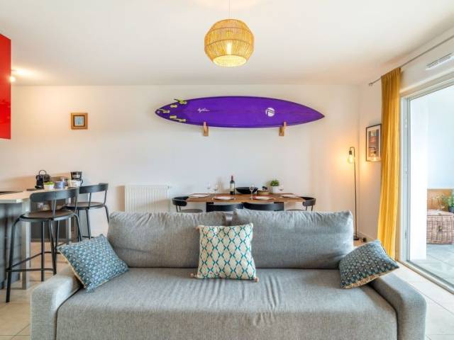 Bidart: Residencia "Xabadenia". A 300 m del centro, a 900 m del mar, a 900 m de la playa, cruzando la calle. En el complejo: ascensor. Aparcamiento en el mismo terreno. Tienda de comestibles, restaurante, bar, panadería, café 300 m, a 5 minutos del centro andando, parada de autobús 200 m, playa de arena "bidart centre" 900 m. Campo de golf (9 hoyos) 4 km, escuela de surf 900 m. Atracciones en los alrededores: Bidaparc 600 m. Zona de senderismo La Rhune 13 km. La entrega de llaves se realiza por la agencia Interhome en Bidart. Apartamento de 3 estancias 60 m2, en planta baja elevada. Con mobiliario confortable y moderno: salón-comedor con TV (pantalla plana). Salida a la terraza. 1 dorm. con 1 cama de matrimonio (160 cm, 200 cm de longitud). Salida a la terraza. 1 dorm. con 2 camas (90 cm, 190 cm de longitud). Cocina abierta (horno, lavavajillas, 4 placas de vitrocerámica, tostadora, hervidor de agua eléctrico, microondas, congelador, grill, cafetera eléctrica). Ducha, WC separado. Calefacción. Terraza 17 m2, orientación sur. Muebles de terraza. El alojamiento dispone de: lavadora, plancha, secador de pelo. Internet (Wifi, extra). Plaza de aparcamiento n. 3 & 10 (2 Coches). A tener en cuenta: adecuado para familias. Detector de humo. Oferta de un particular según el art. 155, IV del CGI. 6412500186379
