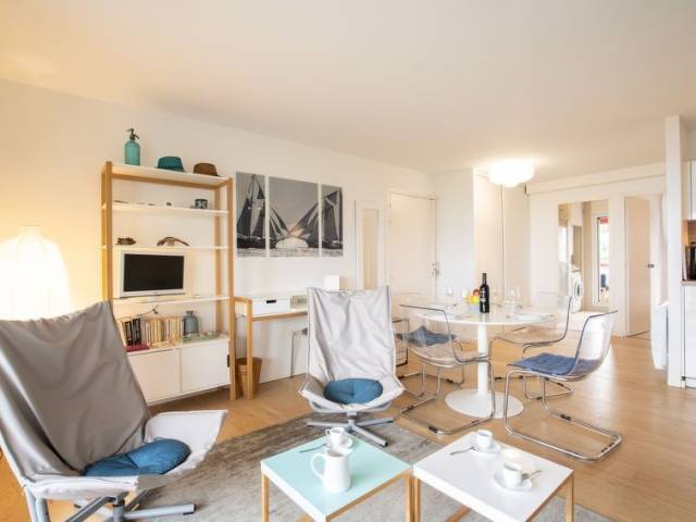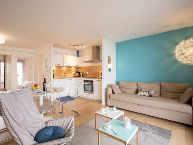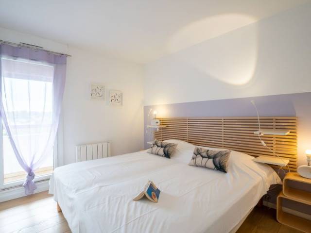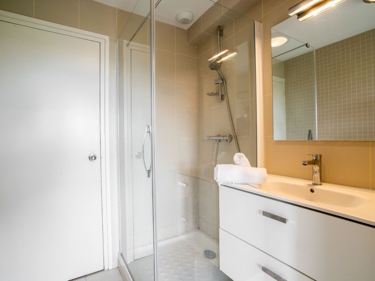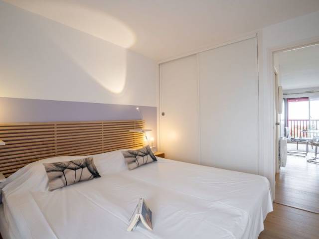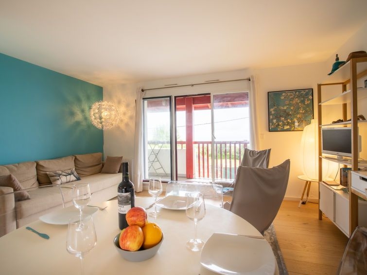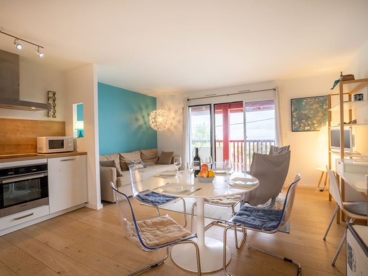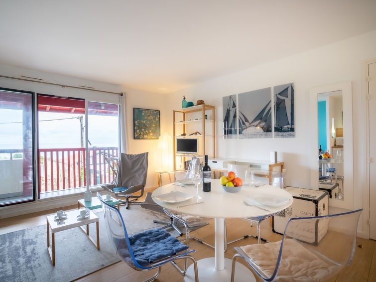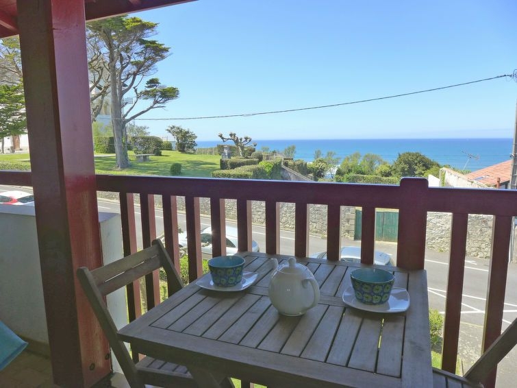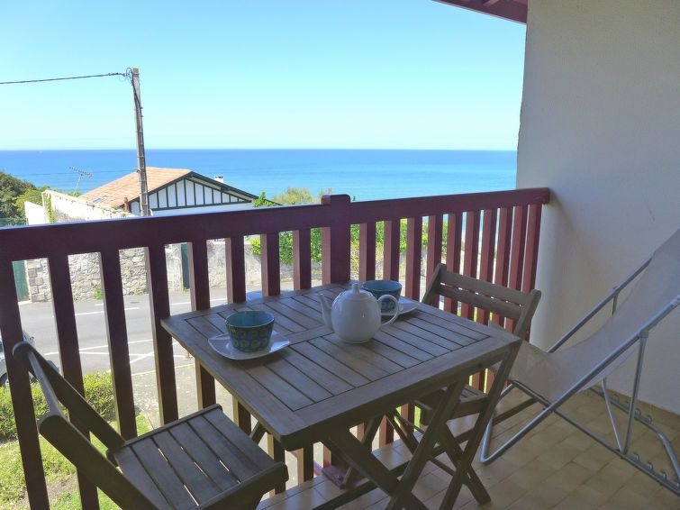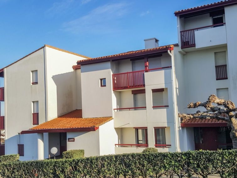 Bidart: Residencia "Bidart Plage". Lugar tranquilo, a 50 m del mar, a 50 m de la playa, cruzando la calle. Comunitario: jardín, cuidado (no está vallado). En el inmueble: sala para guardar bicicleta. Aparcamiento, posibilidad de aparcamiento en la calle. Tienda de comestibles 800 m, restaurante 200 m, panadería 500 m, café 200 m, parada de autobús 300 m, estación de tren "Guethary" 900 m, playa de arena "L'Uhabia" 50 m. Campo de golf (9 hoyos) 4 km, escuela de surf 100 m. Atracciones en los alrededores: Bidapark 500 m, Aquarium de Biarritz 7 km. Zona de senderismo La rhune 40 km. A tener en cuenta: sin ascensor. La entrega de llaves se realiza por la agencia Interhome en Bidart. Se pueden reservar alojamientos adicionales. Apartamento de 2 estancias 44 m2 en el 2° piso. Con mobiliario confortable y bonito: salón-comedor con 1 sofá-cama doble (1 x 140 cm, 190 cm de longitud), TV (pantalla plana). Salida al balcón, orientación oeste. 1 dorm. con 2 camas (90 cm, 190 cm de longitud). Cocina abierta (horno, lavavajillas, 3 Placas de inducción, tostadora, microondas, congelador, cafetera eléctrica). Baño, WC separado. Calefacción eléctrica. Balcón, orientación oeste. Muebles de balcón. Vista muy bonita a las montañas, a la localidad y al mar. El alojamiento dispone de: lavadora, plancha, secador de pelo. Internet (Wifi, gratis). Plaza de aparcamiento n. 9. A tener en cuenta: detector de humo. 6412500156470