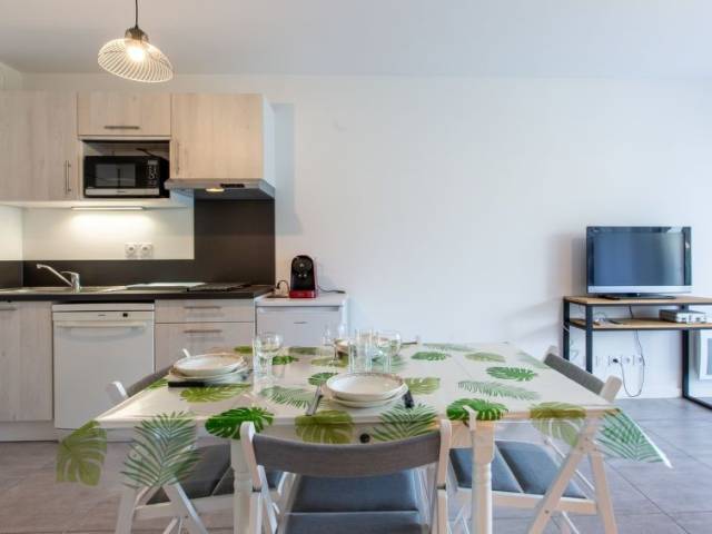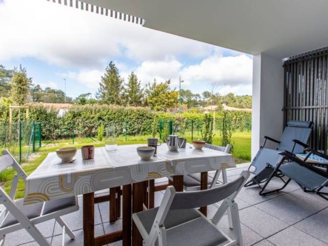 Labenne a 10 km de Hossegor: Residencia "Cap Aréa" del año 2023. En la localidad, a 100 m del centro de Labenne, a 3.4 km del mar, a 3.4 km de la playa. Tienda de comestibles 600 m, supermercado, centro comercial 750 m, restaurante 600 m, bar 750 m, panadería, café 600 m, parada de autobús 300 m, estación de tren 1 km, playa de arena 3.4 km. Tenis 2.8 km. Atracciones en los alrededores: zoo 1.7 km, centre balneotherapie 2.3 km, spa 2.3 km, parc aquatique 2 km, skate parc 1.7 km. Apartamento de 2 estancias 42 m2, en la planta baja, orientación norte. Con mobiliario confortable y bonito: salón-comedor con 1 sofá-cama (140 cm, 190 cm de longitud), TV (pantalla plana). Salida a la terraza. 1 dorm. con 2 camas (90 cm, 200 cm de longitud). Cocina abierta (horno, lavavajillas, 2 placas de vitrocerámica, tostadora, hervidor de agua eléctrico, microondas, cafetera eléctrica). Ducha/WC. Calefacción eléctrica. Terraza 12 m2, cubierta, orientación norte, terraza-jardín 37 m2, orientación norte. Muebles de terraza. El alojamiento dispone de: lavadora, plancha. Internet (Wifi, extra). Plaza de aparcamiento n. 238 - 239 (2 Coches). A tener en cuenta: apartamento que da a la calle. Detector de humo. Oferta de un particular según el art. 155, IV del CGI. 40133000396KA