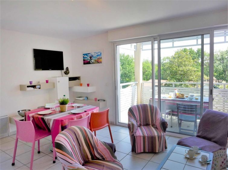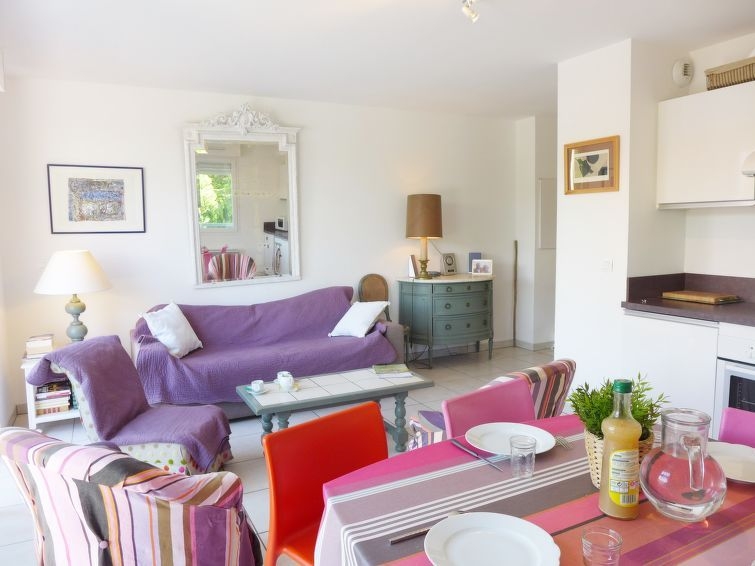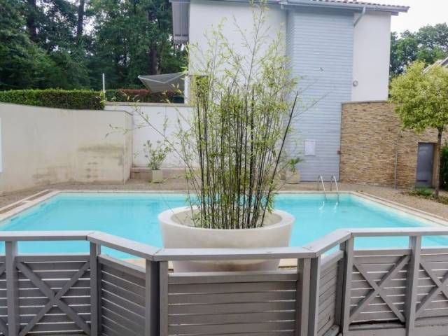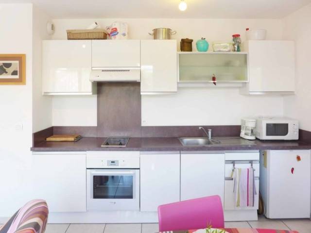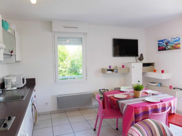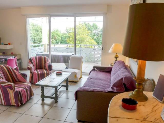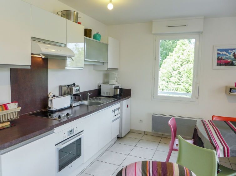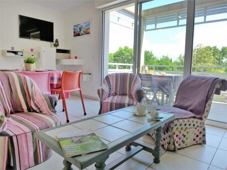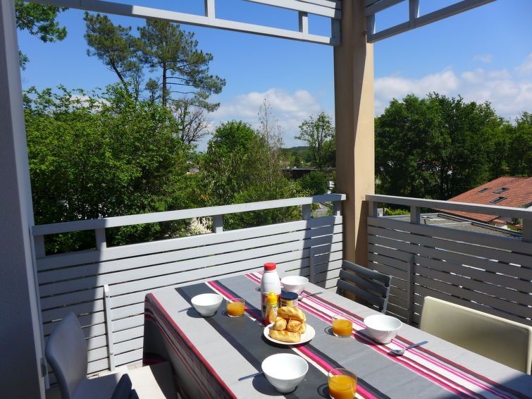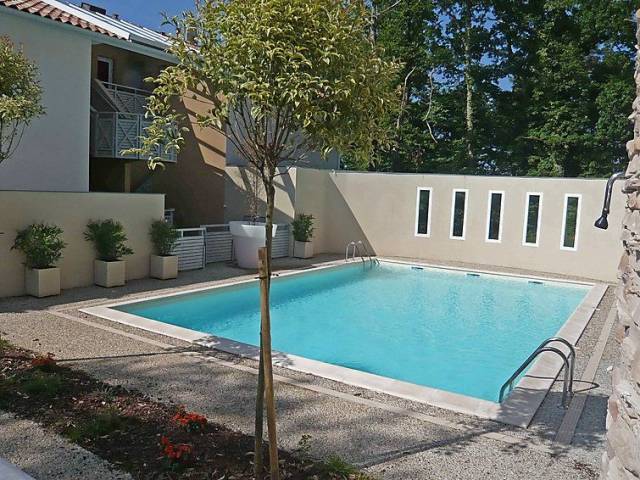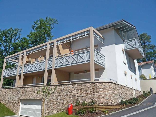 Anglet: Residencia "Les Demeures de Brindos", moderna, bonita de 3 plantas del año 2009. Lugar tranquilo en un barrio residencial, a 4.5 km del mar, a 4.5 km de la playa. Comunitario: piscina rectangular (Disponible por temporada: 30.Jun. - 30.Sep.). Tienda 500 m, panadería 800 m, parada de autobús 300 m, estación de tren "Biarritz" 1.5 km, playa de arena "Anglet" 4.5 km. Campo de golf (18 hoyos) 9 km. Atracciones en los alrededores: Le Palais des Festivals "Halles d'Iraty", L'aéroport de Biarritz, Le centre commercial Leclerc. A tener en cuenta: coche recomendable. La entrega de llaves se realiza por la agencia Interhome en Biarritz, 4 km. Apartamento de 3 estancias 50 m2 en el 1° piso. Espacioso, con mobiliario confortable: salón-comedor con TV. Salida a la terraza. 1 dorm. con 2 camas (80 cm, 190 cm de longitud), TV (pantalla plana). 1 dorm. con 2 camas (90 cm, 190 cm de longitud). Cocina abierta (horno, lavavajillas, 2 placas de vitrocerámica, microondas). Baño, WC separado. Calefacción eléctrica. Terraza 10 m2, orientación sur y orientación oeste. Muebles de terraza. Vista a la piscina y al bosque. El alojamiento dispone de: lavadora, cuna, secador de pelo. Internet (Wifi, extra). Plaza de aparcamiento n. 140. A tener en cuenta: detector de humo. 6402400022021