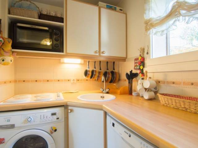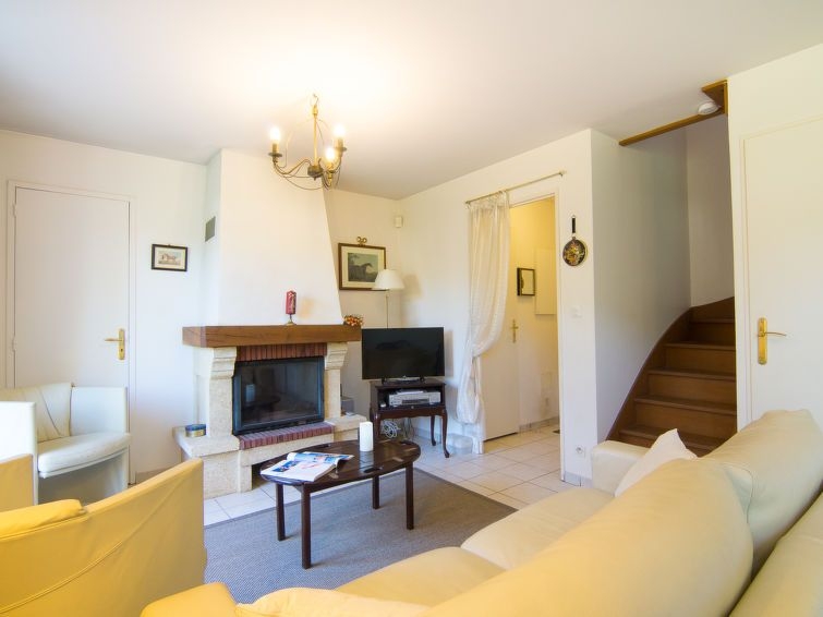 Casa adosada 3 estancias 55 m2 en 2 plantas. Entrada. Salón-comedor con chimenea (sólo con función decorativa), TV (pantalla plana). Salida al jardín. Cocina (4 fogones, horno, lavavajillas, tostadora, hervidor de agua eléctrico, microondas, cafetera eléctrica). WC separado. Calefacción eléctrica. Planta superior: 1 dorm. con 1 cama de matrimonio (1 x 180 cm, 200 cm de longitud), TV (pantalla plana). 1 dorm. con 1 cama de matrimonio (1 x 140 cm, 190 cm de longitud), TV (pantalla plana). Ducha/WC. Jardín, orientación este y orientación sur, césped. Muebles de terraza, tumbonas. El alojamiento dispone de: lavadora, secadora. Internet (Wifi, gratis). Plaza de aparcamiento. A tener en cuenta: apartamento para no fumadores. Detector de humo. 14701 MT 2021 14