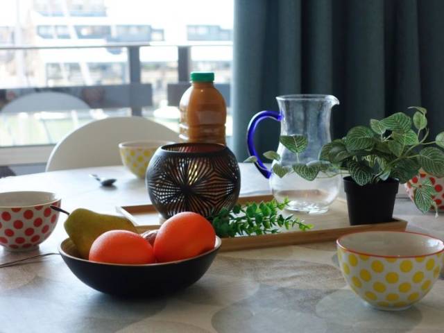Apartamento de 3 estancias 60 m2 en 2 plantas en el 2° piso. Vivienda adecuada para 2 adultos + 2 niños. Luminoso, con mobiliario confortable: entrada. Ducha, WC separado. Calefacción eléctrica. En planta inferior: 1 dorm. con 1 cama de matrimonio (140 cm, 190 cm de longitud), TV (pantalla plana). 1 dorm. para niños con 1 x 2 literas (90 cm, 190 cm de longitud). Planta superior: salón-comedor con ventanal con TV (pantalla plana), radio, CD y DVD. Salida al balcón. Rincón-cocina (horno, lavavajillas, 3 Placas de inducción, tostadora, hervidor de agua eléctrico, microondas, cafetera eléctrica). Balcón 7 m2, orientación oeste. Vista bonita al mar y al puerto. El alojamiento dispone de: lavadora. Internet (Wifi, gratis). Plaza de aparcamiento. A tener en cuenta: apartamento para no fumadores, aparcamiento para coches pequeños. Detector de humo. 14220 000129 VK