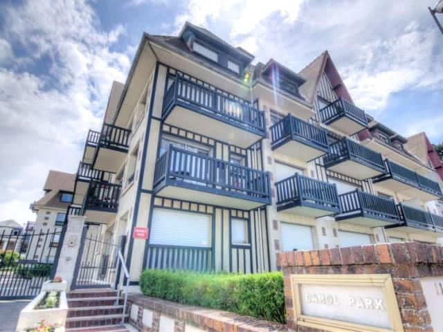Deauville: Residencia "Le Carol Park", de 3 plantas. En la localidad, a 1.5 km del centro, en un barrio residencial, a 450 m del mar, a 450 m de la playa. En el complejo: ascensor. (1 escalone). Tienda 1 km, supermercado 400 m, estación de tren "Deauville-Trouville" 2.1 km, playa de arena 450 m, piscina cubierta 1 km, piscina termal "Deauville" 1 km. Campo de golf 8 km, tenis 1.3 km, centro ecuestre 1.3 km. Atracciones en los alrededores: Centre International Deauville - CID 1.2 km, Hippodrome de Clairefontaine 1.7 km, Mémorial de Caen 51 km, Plages du Débarquement d'Arromanches 84 km, Centre culturel Les Fransiscaines 50 m. La entrega de llaves se realiza por la agencia Interhome en Deauville.
