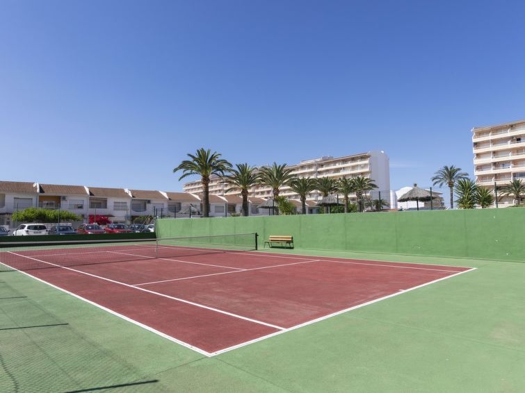 Papa Luna Peñiscola: Casa de apartamentos "Peñiscola Garden", agradable. 80 casas en el complejo. A 350 m del mar, a 350 m de la playa. Comunitario: jardín en diferentes niveles (vallado), 3 piscinas (40 x 25 m, Disponible por temporada: 15.Jun. - 15.Sep. horario piscina: 10:00-20:00). Ducha exterior, tenis, aparcamiento junto a la casa. Tienda, tienda de comestibles, supermercado, restaurante, bar 350 m, playa de arena "Playa Norte" 350 m. Campo de golf (18 hoyos) 30 km. Atracciones en los alrededores: Laberinto mas grande de España 9 m, Delta del Ebro 50 km, Museo Ciencia y Artes Valencia 150 km, Golf Panoramica 30 km, Castillo de Peñiscola 3 km. Zona de senderismo Sierra de Irta 10 km. A tener en cuenta: sin ascensor.