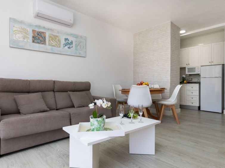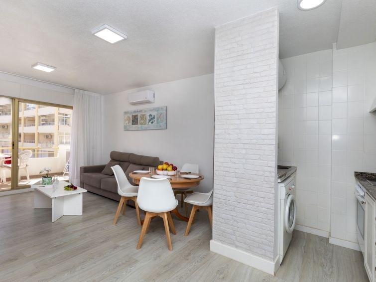 "Peñismar I", apartamento de 2 estancias 48 m2 en el 1° piso. Con mobiliario funcional y confortable: salón-comedor con 1 sofá-cama doble (135 cm, 190 cm de longitud), TV digital, aire acondicionado y bomba de calor, caliente. Salida a la terraza. 1 dorm. con 1 cama de matrimonio (135 cm, 190 cm de longitud), ventilador. Cocina abierta (horno, 4 placas de vitrocerámica, tostadora, microondas, congelador, cafetera eléctrica, Cápsulas de café (NESPRESSO)). Ducha/WC. Calentador (80 litros). Calefacción no en todas las estaciones. Terraza. Muebles de terraza. Vista al mar y a la piscina. El alojamiento dispone de: lavadora, plancha, secador de pelo. Internet (Wifi, gratis). Plaza de aparcamiento n. 86. A tener en cuenta: apartamento para no fumadores. 1 mascota pequeña / perro. TV solamente ES. EGVT-412-CS