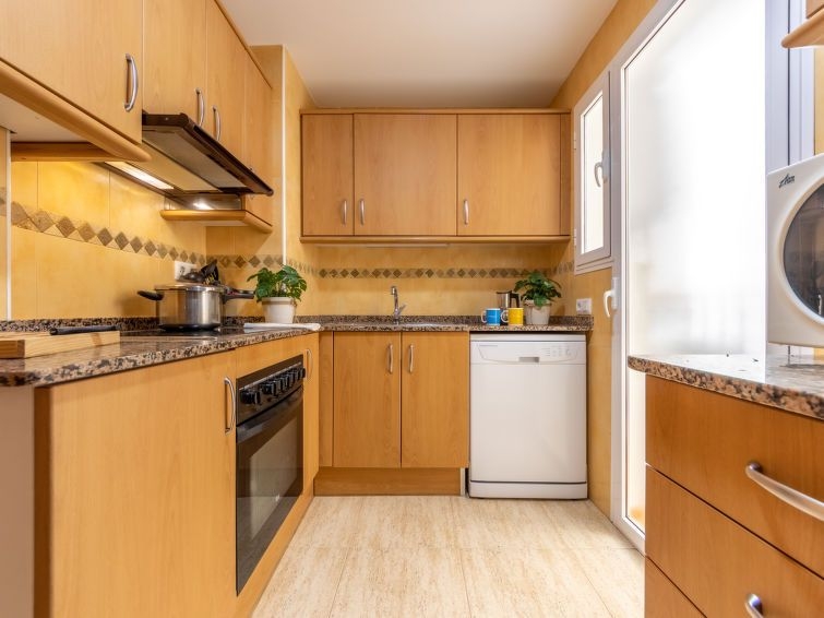 "Port flamingo", apartamento de 3 estancias 79 m2. Espacioso y luminoso, con mobiliario confortable y bonito: salón-comedor con TV digital, pantalla plana, aire acondicionado y bomba de calor, caliente. Salida al balcón. 1 dorm. con 1 cama de matrimonio (150 cm). 1 dorm. con 2 camas (90 cm). Cocina (horno, lavavajillas, 3 placas de vitrocerámica, tostadora, hervidor de agua eléctrico, microondas, cafetera eléctrica). Baño/ducha. Muebles de balcón. Vista bonita al mar. El alojamiento dispone de: lavadora, plancha, secador de pelo. Internet (Wifi, gratis). Garaje. Adecuado para familias. HUTTE-034075