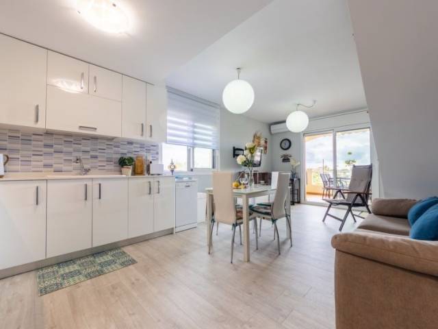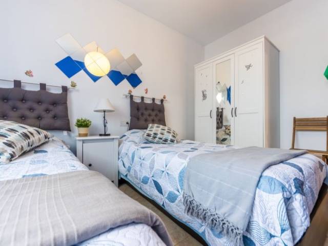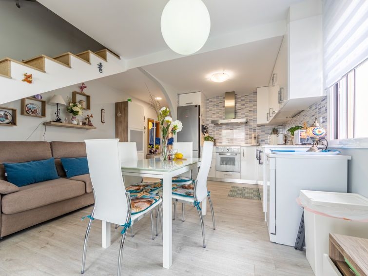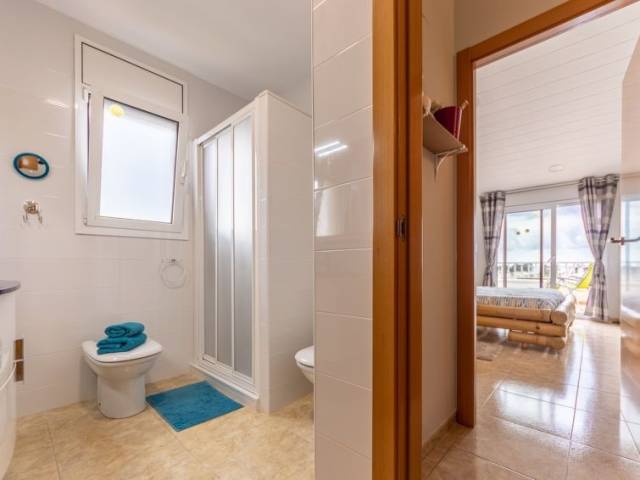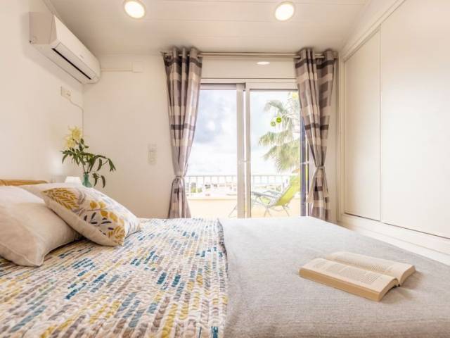 "Mitjorn", apartamento de 3 estancias. Luminoso, con mobiliario confortable y moderno: salón-comedor con TV digital, aire acondicionado y bomba de calor, caliente. Salida a la terraza. 1 dorm. con 1 cama (150 cm). 1 dorm. doble con 2 camas (90 cm). Cocina abierta (lavavajillas, 3 placas de vitrocerámica, tostadora, hervidor de agua eléctrico, microondas). 2 ducha/WC. Muebles de terraza. Vista muy bonita. El alojamiento dispone de: lavadora, plancha, trona, cuna, secador de pelo. Internet (Wifi, gratis). Plaza de aparcamiento. Adecuado para familias. 2 mascotas / perros. HUTTE-060227