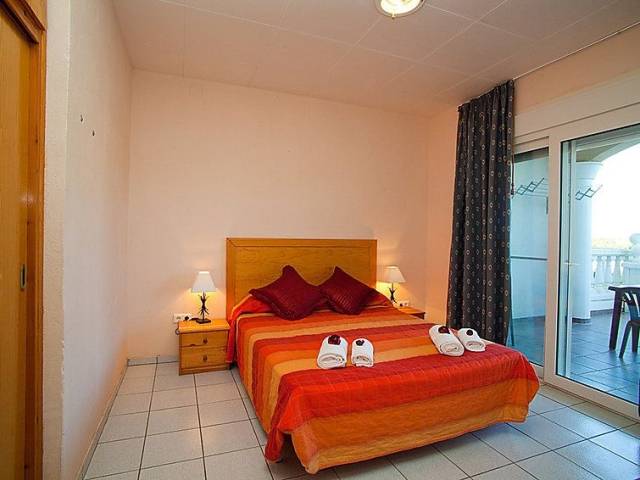 Apartamento de 3 estancias 70 m2, en planta superior. Con mobiliario funcional y confortable: salón-comedor con TV satélite y aire acondicionado. Salida a la terraza. 1 dorm. con 1 cama de matrimonio. Salida a la terraza. 1 dorm. con 2 camas. Cocina abierta (horno, X placas de vitrocerámica, microondas, cafetera eléctrica). Baño/WC. Calefacción por el suelo. Terraza grande. Muebles de terraza. Vista al mar, a la piscina y al jardín. El alojamiento dispone de: lavadora. Internet (Wifi, gratis). Adecuado para familias. 2 mascotas / perros. HUTTE001687