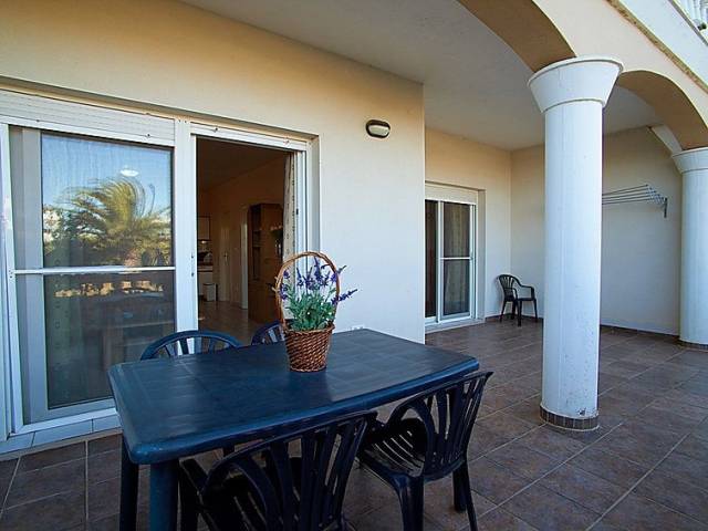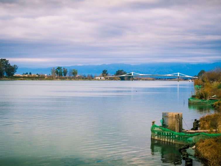 Riumar a 10 km de Deltebre: Casa de apartamentos "Royal Delta", idóneo para niños, bonito de 2 plantas, rodeado de campos. 20 apartamentos en la residencia. Lugar tranquilo, soleado, a 50 m del mar, a 50 m de la playa, acceso directo a la playa. Comunitario: jardín bonito con césped, piscina rectangular (20 x 10 m, Disponible por temporada: 01.Ene. - 31.Dic.) con escalera interior. Piscina para niños, ducha exterior, tenis, barbacoa. En el inmueble: Wifi. Aparcamiento en el mismo terreno. Tienda, restaurante 100 m. A tener en cuenta: equipamiento para bebés a demanda. Grupos de jóvenes sólo bajo petición. La foto corresponde a una de las viviendas.
