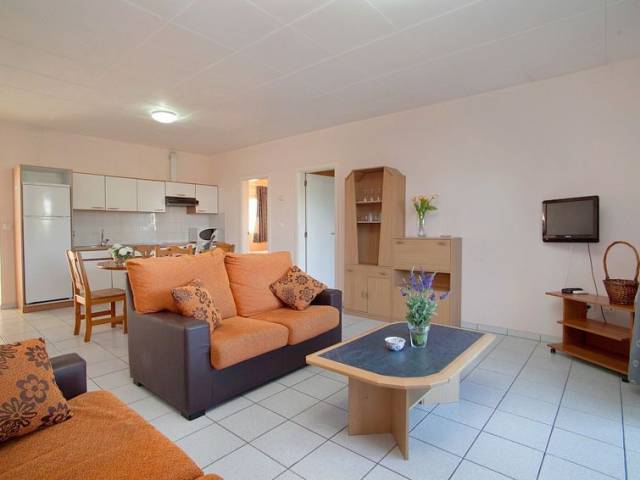Apartamento de 3 estancias 70 m2, en la planta baja. Con mobiliario funcional y confortable: salón-comedor con TV satélite y aire acondicionado. Salida a la terraza. 1 dorm. con 1 cama de matrimonio. Salida a la terraza. 1 dorm. con 2 camas. Cocina abierta (horno, X placas de vitrocerámica, microondas, cafetera eléctrica). Baño/WC. Calefacción por el suelo. Terraza grande. Muebles de terraza. Vista a la piscina y al jardín. El alojamiento dispone de: lavadora. Internet (Wifi, gratis). Adecuado para familias. 2 mascotas / perros. HUTTE000937