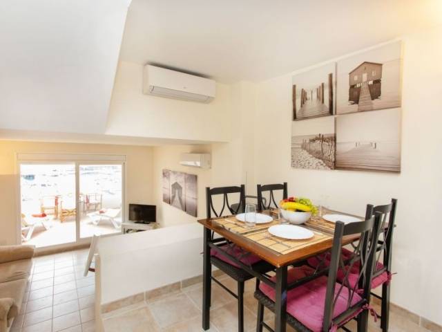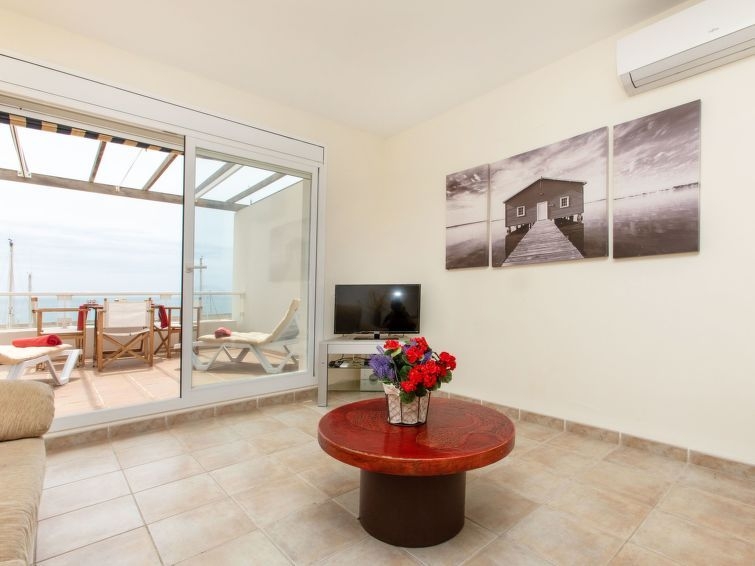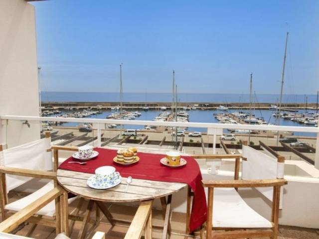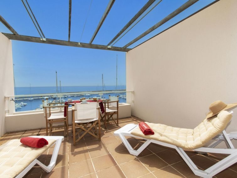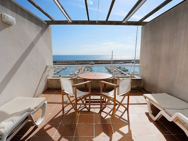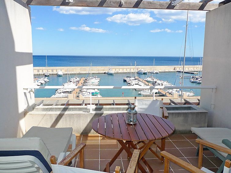 "Marina del Port", apartamento de 3 estancias 60 m2 en 3 plantas, en la planta baja. Con mobiliario confortable y de buen gusto: sala de estar 15 m2 con puerta corredera con TV satélite, TV digital, pantalla plana y aire acondicionado. Salida a la terraza. Cocina-comedor (horno, lavavajillas, 4 placas de vitrocerámica, tostadora, hervidor de agua eléctrico, microondas, congelador, cafetera eléctrica). WC separado. (100 litros). Ningún tipo de calefacción. Planta superior: 1 dorm. con 1 cama de matrimonio (140 cm), aire acondicionado. Planta superior 2: 1 dorm. con 2 camas (90 cm), aire acondicionado. Salida al balcón. Baño/bidet/WC. Balcón 2 m2, terraza 10 m2, terraza 14 m2. Vista muy bonita al mar y al puerto. El alojamiento dispone de: lavadora, secadora, plancha, secador de pelo. Internet (Wifi, gratis). A tener en cuenta: TV solamente ES, DE, FR. HUTTE002221