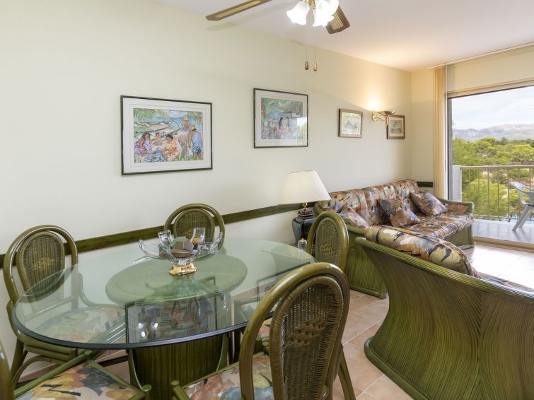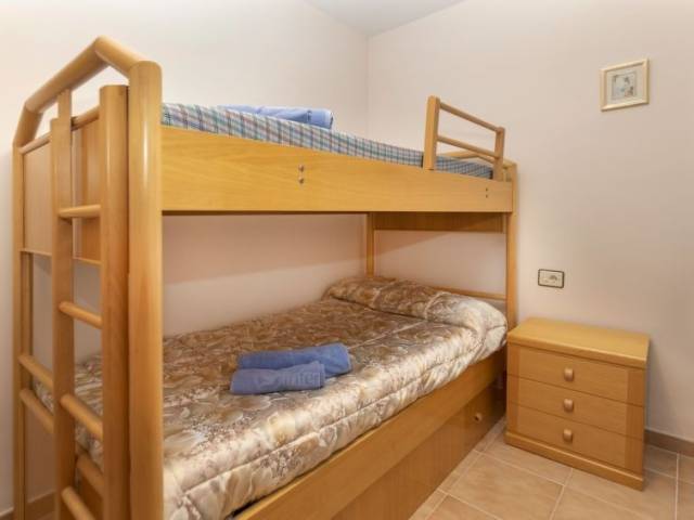 "Cala d'or", apartamento de 3 estancias 60 m2. Con mobiliario funcional y confortable: salón-comedor con mesa de comedor y TV digital. Salida al balcón. 1 dorm. con 1 cama de matrimonio (135 cm). 1 dorm. con 1 x 2 literas (90 cm). Cocina (horno, 4 placas de vitrocerámica, tostadora, hervidor de agua eléctrico, microondas, cafetera eléctrica). Ducha/WC. Calentador (50 litros). Ningún tipo de calefacción. Balcón. Muebles de balcón. El alojamiento dispone de: lavadora, plancha, trona, cuna, secador de pelo. A tener en cuenta: sin ascensor. HUTT-070468