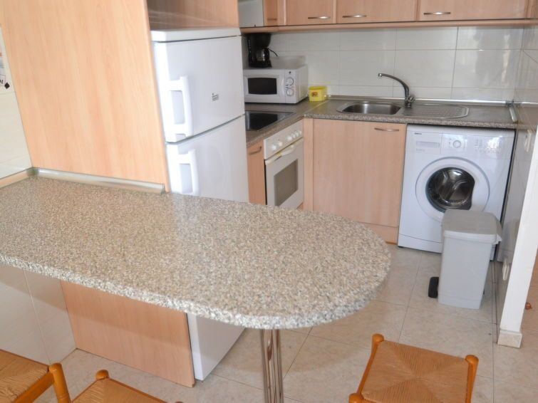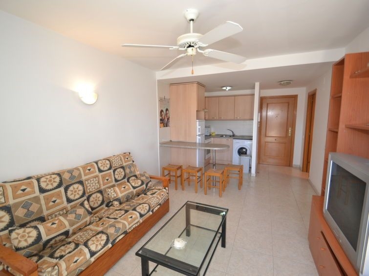 "Aguamarina 1", apartamento de 2 estancias 42 m2 en el 4° piso. Con mobiliario sencillo y funcional: salón-comedor con puerta corredera con 1 sofá-cama doble (135 cm, 190 cm de longitud), TV digital. Salida al balcón. 1 dorm. con 1 cama (90 cm, 190 cm de longitud), 1 cama de matrimonio (135 cm, 190 cm de longitud). Salida a la terraza. Cocina abierta (horno, lavavajillas, 4 placas de vitrocerámica, tostadora, microondas, cafetera eléctrica). Baño/WC. Ningún tipo de calefacción. Terraza. Muebles de terraza. Vista a la piscina y al jardín. El alojamiento dispone de: lavadora, plancha. Internet (Wifi, gratis). A tener en cuenta: casa para no fumadores, sin aparcamiento. 1 mascota / perro. HUTT-007501