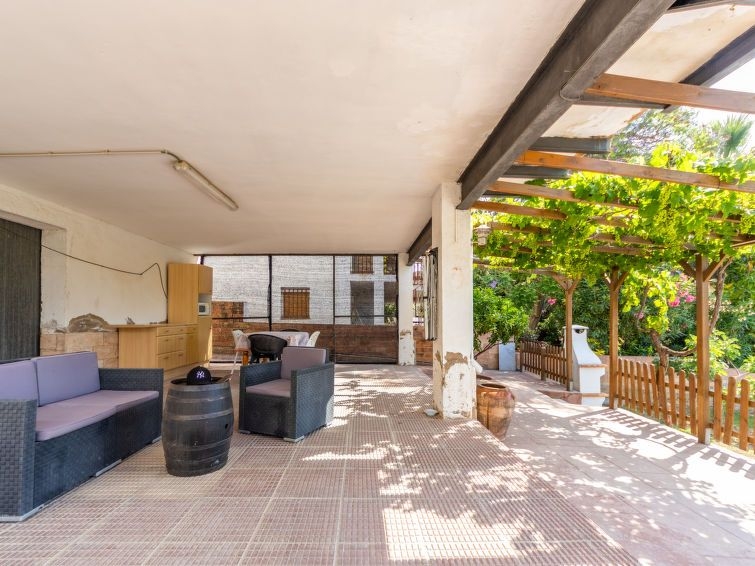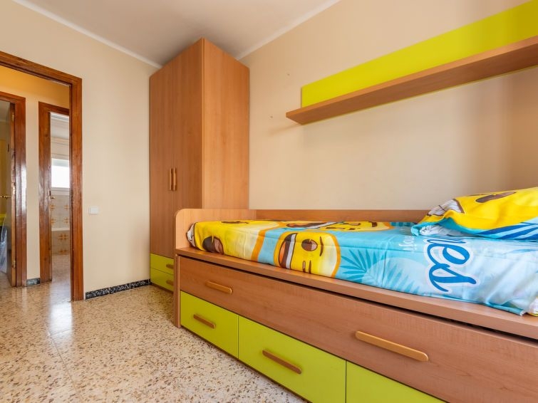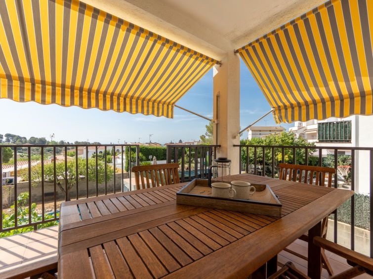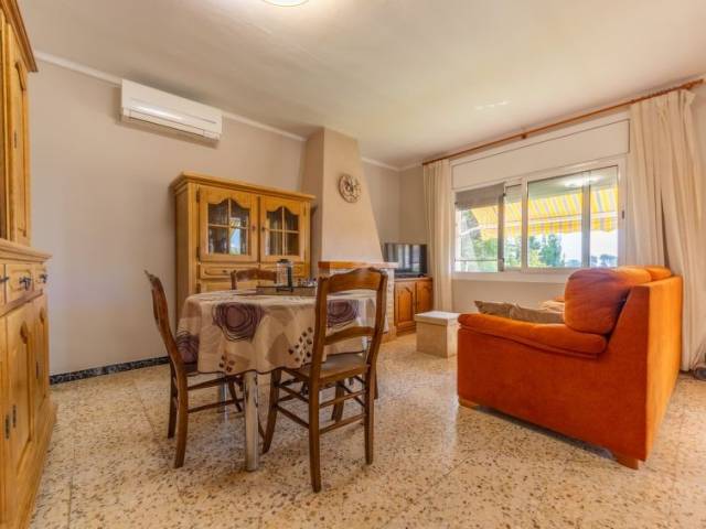 "Montornes", casa 3 estancias 64 m2. Vivienda adecuada para 4 adultos. Con mobiliario confortable y agradable: salón-comedor con TV digital y aire acondicionado. Salida a la terraza. 1 dorm. con 1 cama de matrimonio (1 x 155 cm, 200 cm de longitud), ventilador. 1 dorm. con 1 cama de matrimonio (1 x 140 cm, 200 cm de longitud), ventilador con 1 cama-nido (2 pers. 2 x 90 cm, 190 cm de longitud). Cocina (4 fogones, horno, tostadora, microondas, cafetera eléctrica, Cápsulas de café (Dolce Gusta) extra). Ducha/WC. Ningún tipo de calefacción. Terraza-jardín. Muebles de terraza, barbacoa. El alojamiento dispone de: lavadora, plancha, secador de pelo. Internet (Wifi, gratis). A tener en cuenta: apartamento para no fumadores. TV solamente ES. R000000001