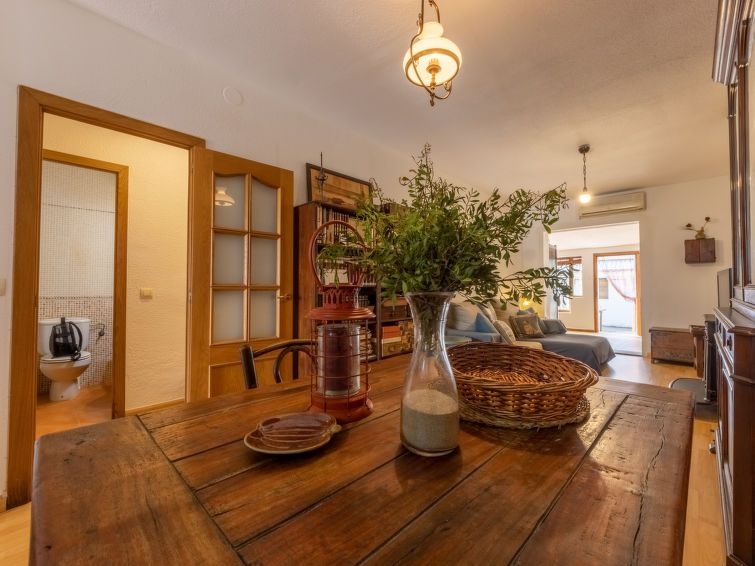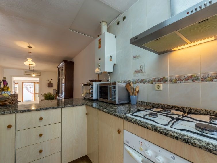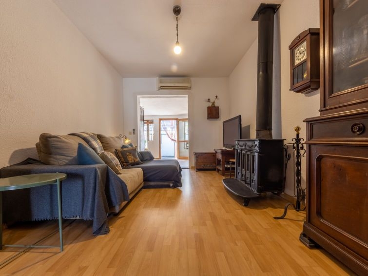 "Villa Pepita", casa adosada 3 estancias 61 m2. Vivienda adecuada para 2 adultos + 2 niños. Con mobiliario sencillo y funcional: salón-comedor con TV. 1 dorm. con 1 cama de matrimonio (1 x 140 cm, 190 cm de longitud), ventilador. 1 dorm. con 2 camas (90 cm, 190 cm de longitud), ventilador. Sala de estar con chimenea. Cocina abierta (4 fogones, horno, tostadora, hervidor de agua eléctrico, microondas, cafetera eléctrica). Baño/WC, WC separado. Terraza-jardín pequeña. Barbacoa. El alojamiento dispone de: lavadora, plancha, trona, cuna hasta 2 años, secador de pelo. Internet (Wifi, gratis). A tener en cuenta: permitido máximo 1 mascota / perro. TV solamente ES. HUTT-066159