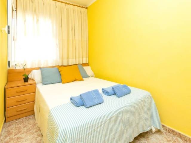 "Sunset", apartamento de 3 estancias 67 m2. Con mobiliario funcional y confortable: salón-comedor con mesa de comedor, TV digital y aire acondicionado. Salida al balcón. 1 dorm. con 1 cama de matrimonio (135 cm, 190 cm de longitud), ventilador con 1 cama de matrimonio (150 cm, 190 cm de longitud), ventilador. Cocina (4 fogones, tostadora, microondas, cafetera eléctrica, horno para pizza). Baño/bidet/WC. Ningún tipo de calefacción. Balcón. Muebles de balcón. El alojamiento dispone de: lavadora, plancha, secador de pelo. Internet (Wifi, gratis). HUTT062106
