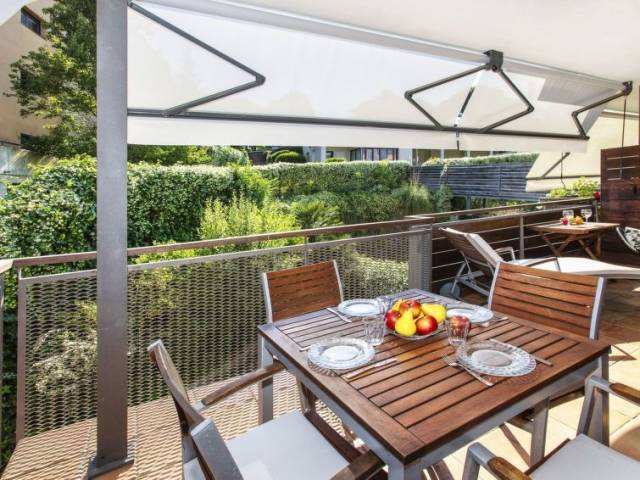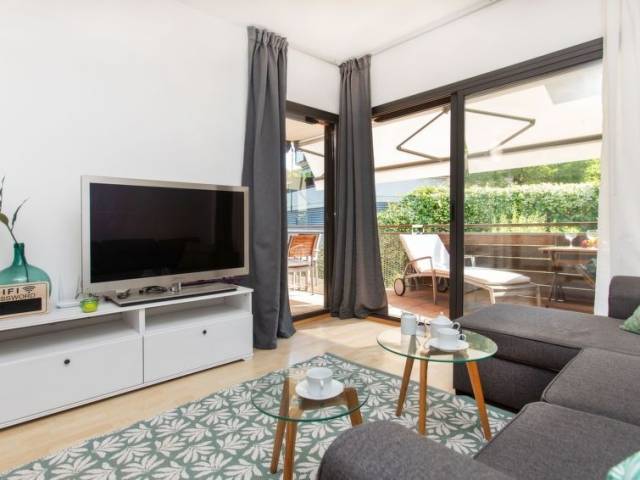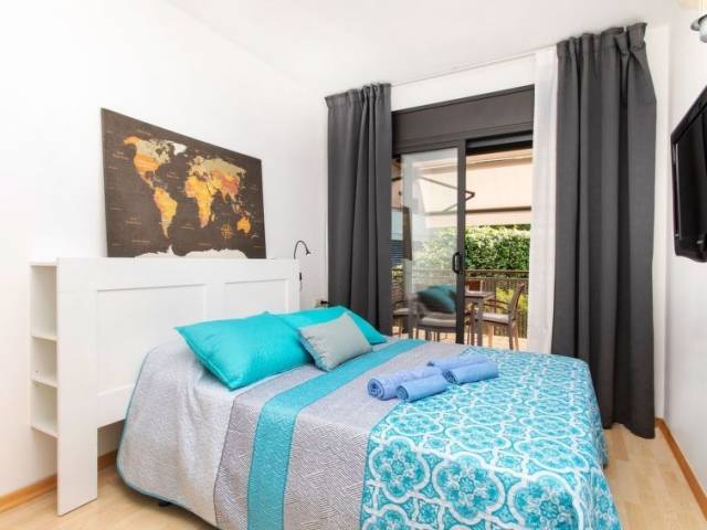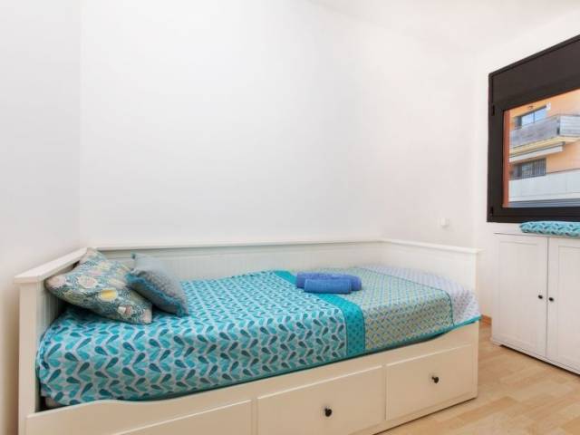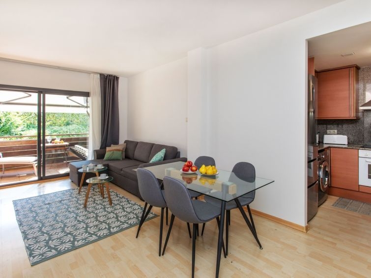 Boadella Beach a 3 km de Lloret de Mar: Casa de apartamentos "Boadella Beach", de 3 plantas del año 2005, rodeado de árboles. Lugar soleado en una pendiente, a 200 m del mar. Comunitario: jardín en diferentes niveles bonito césped, 2 piscinas (18 x 6 m, 100 - 180 cm de profundidad, Disponible por temporada: 01.Jun. - 30.Sep.). WC en zona de piscina, piscina para niños, ducha exterior, básquet, parque infantil (columpio). En el inmueble: ascensor, lavadora. Aparcamiento n. 6 (cubierto). Dimensiones: altura 320 cm ancho 470 cm. Tienda 700 m, tienda de comestibles 300 m, restaurante 400 m, parada de autobús 300 m, estación de tren "Blanes" 6 km, playa de arena, cala para bañarse 200 m. Campo de golf 2 km, tenis 1 km, centro ecuestre 2 km. Atracciones en los alrededores: Waterworld Lloret, Girona 38 km, Barcelona 67 km, Marinland 8 km. A tener en cuenta: adecuado para familias. El propietario no acepta grupos. El propietario no acepta grupos de adolescentes/jóvenes. La propiedad con ref: es9469.270.1 está situada en la misma parcela. Vecindario muy sensible a ruidos. Se ruega respetar la tranquilidad y normas de buen comportamiento. "Sa Boadella Beach", apartamento de 3 estancias 53 m2 en el 1° piso, orientación sur. Con mobiliario funcional y confortable: salón-comedor con puerta corredera con TV digital, aire acondicionado y bomba de calor, caliente. Salida a la terraza. 1 dorm. con 1 cama-nido (2 pers. 2 x 90 cm, 190 cm de longitud), ventilador. 1 dorm. con 1 cama de matrimonio (160 cm, 200 cm de longitud), TV. Salida a la terraza. Cocina abierta (horno, lavavajillas, 4 placas de vitrocerámica, tostadora, hervidor de agua eléctrico, microondas, congelador, cafetera eléctrica, microondas/grill) con pasa-platos. Baño/bidet/WC. Calefacción por el suelo. Terraza 7 m2. Muebles de terraza, tumbonas (1), rincón para sentarse. Vista muy bonita al jardín. El alojamiento dispone de: lavadora, plancha, trona, cuna hasta 3 años, secador de pelo. Internet (Wifi, gratis). Plaza de aparcamiento n. 6, altura 320 cm, ancho 470 cm. A tener en cuenta: TV solamente ES. HUTG046351