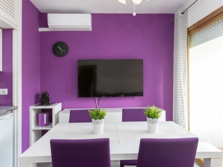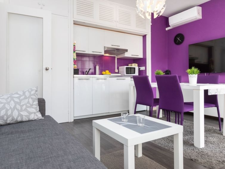 "jazz", apartamento de 2 estancias 33 m2. Luminoso, con mobiliario moderno: salón-comedor con 1 sofá-cama (150 cm, 200 cm de longitud), TV, aire acondicionado y bomba de calor, caliente. Salida al balcón. 1 dorm. doble con 1 cama de matrimonio (140 cm, 200 cm de longitud), calefacción eléctrica. Cocina abierta (1 Placas de inducción, tostadora, hervidor de agua eléctrico, microondas, cafetera eléctrica, Cápsulas de café (Nespresso)) con mesa de comedor, TV, aire acondicionado y bomba de calor, caliente. Salida al balcón. Baño/WC. Balcón pequeño 3 m2, orientación este. Muebles de balcón. Vista a la localidad. El alojamiento dispone de: lavadora, plancha, trona, cuna hasta 2 años, secador de pelo. Internet (Wifi, gratis). A tener en cuenta: TV solamente ES. HUTG-004185