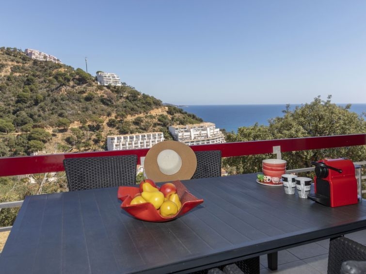 Cala Salionc a 6 km de Tossa de Mar: Casa de apartamentos "Rojo", agradable, confortable, reformado en 2019. En el barrio de Cala Salionç, a 400 m del mar, a 400 m de la playa. Privado: parque infantil. En el inmueble: aire acondicionado. Posibilidad de aparcamiento en la calle. Supermercado, restaurante, bar, panadería 300 m. Campo de golf 15 km, tenis 500 m. Atracciones en los alrededores: Sant Feliu de Guixols 14 km, Platja d'Aro 19 km. A tener en cuenta: coche recomendable. El propietario no acepta grupos de adolescentes/jóvenes. Vecindario muy sensible a ruidos. Se ruega respetar la tranquilidad y normas de buen comportamiento. "Rojo", apartamento de 2 estancias 32 m2. Espacioso y luminoso, con mobiliario funcional y confortable: salón-comedor con 1 sofá-cama (150 cm, 190 cm de longitud), mesa de comedor, TV satélite y canales internacionales. Salida a la terraza. 1 dorm. doble con 1 cama de matrimonio (150 cm, 190 cm de longitud). Rincón-cocina (lavavajillas, 3 Placas de inducción, tostadora, hervidor de agua eléctrico, microondas, congelador, cafetera eléctrica). Ducha/WC. Ningún tipo de calefacción. Terraza 12 m2. Muebles de terraza. Vista al mar y a la localidad. El alojamiento dispone de: lavadora, plancha, secador de pelo. Internet (Wifi, gratis). A tener en cuenta: adecuado para familias. TV solamente FR, DE. HUTG044620