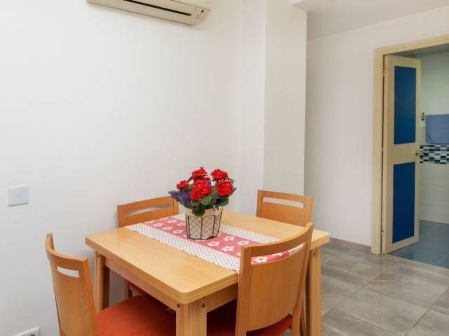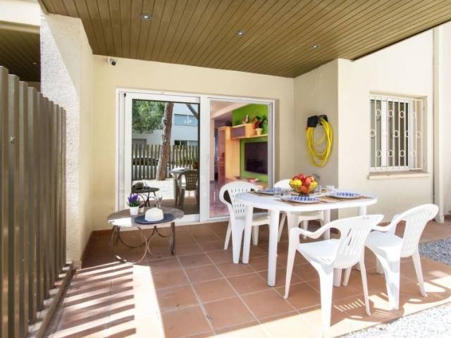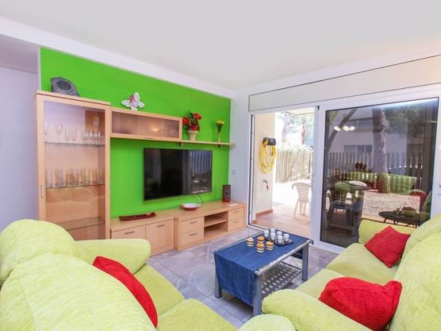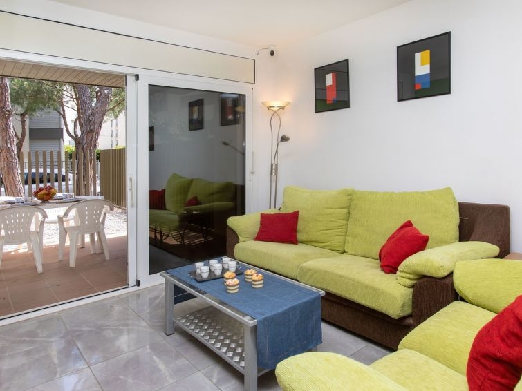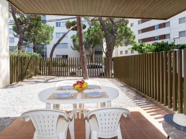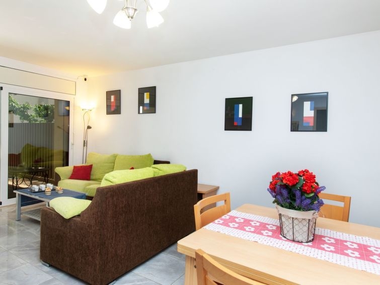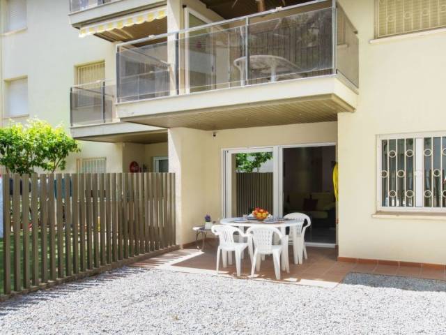Playa de Aro: Casa de apartamentos "Ancora", de 3 plantas. En la localidad, a 600 m del centro de Platja D'aro, a 50 m del mar. Privado: jardín natural (vallada). Supermercado 1 km, restaurante, bar 100 m, playa de arena "Playa de Aro" 50 m. Puerto deportivo 1.2 km, campo de golf 4 km, centro ecuestre 4 km. El propietario no acepta grupos de adolescentes/jóvenes. "Ancora", apartamento de 3 estancias 55 m2, en la planta baja. Con mobiliario funcional: salón-comedor con TV digital, pantalla plana y aire acondicionado. Salida a la terraza-jardín. 1 dorm. con 1 cama de matrimonio (150 cm, 190 cm de longitud), TV digital y pantalla plana. 1 dorm. con 1 cama de matrimonio (135 cm, 190 cm de longitud). Cocina (horno, 4 placas de vitrocerámica, tostadora, hervidor de agua eléctrico, microondas, congelador, cafetera eléctrica). Ducha/WC. Ningún tipo de calefacción. Terraza-jardín. Muebles de terraza. El alojamiento dispone de: lavadora, secadora, plancha, trona, cuna, secador de pelo. Internet (Wifi, gratis). A tener en cuenta: sin aparcamiento. TV solamente ES. HUTG-007052