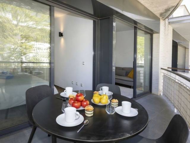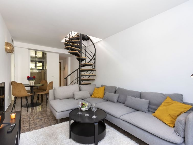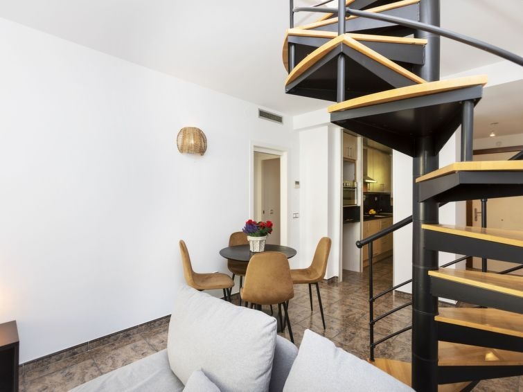 "Mar i Llum", apartamento de 3 estancias 57 m2 en el 2° piso. Con mobiliario funcional: salón-comedor con TV digital. Salida a la terraza. 1 dorm. con 1 cama de matrimonio (180 cm, 200 cm de longitud). 1 dorm. con 2 camas (90 cm, 200 cm de longitud). Cocina (horno, lavavajillas, 3 placas de vitrocerámica, tostadora, hervidor de agua eléctrico, microondas, cafetera eléctrica). Ducha/WC. Aire acondicionado, aire caliente. Terraza. Muebles de terraza. El alojamiento dispone de: lavadora, plancha, trona, cuna, secador de pelo. Internet (Wifi, gratis). A tener en cuenta: apartamento para no fumadores. TV solamente ES. HUTG-071040