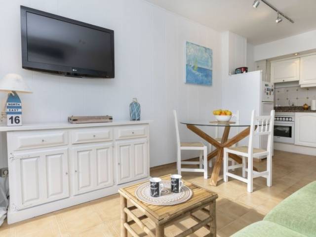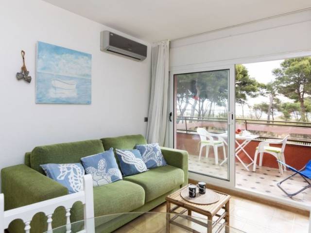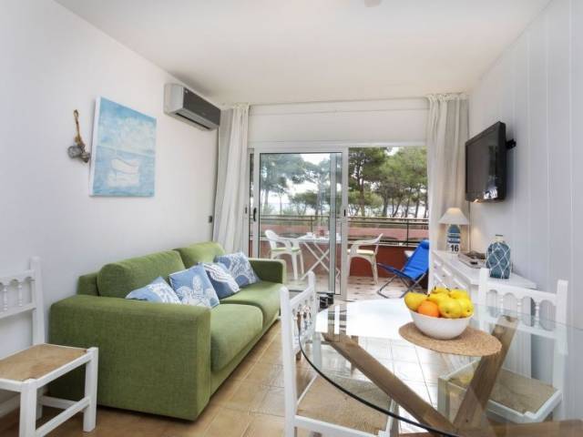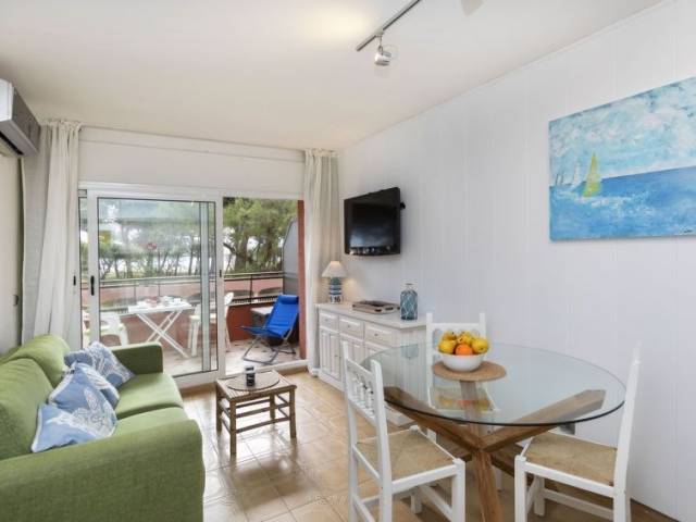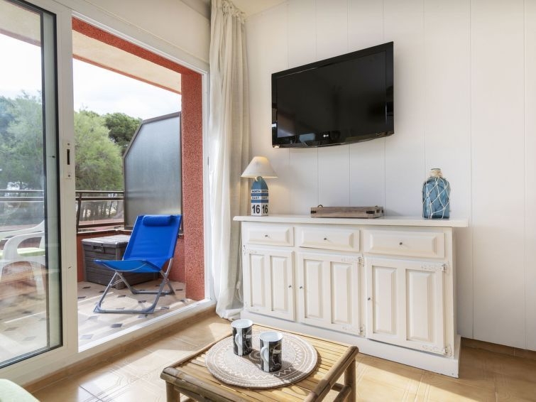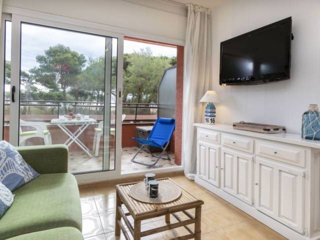 "Salines VIII", apartamento de 2 estancias 45 m2 en el 1° piso. Con mobiliario funcional: salón-comedor con 1 sofá-cama doble, TV digital, aire acondicionado y bomba de calor, caliente. 1 dorm. con 1 cama de matrimonio (150 cm, 190 cm de longitud), aire acondicionado y bomba de calor, caliente. Cocina-comedor (horno, 3 placas de vitrocerámica, tostadora, hervidor de agua eléctrico, microondas, congelador, cafetera eléctrica). Baño/WC. Muebles de terraza. Vista muy bonita al mar y al paisaje. El alojamiento dispone de: lavadora, plancha, trona, cuna, secador de pelo. Internet (Wifi, gratis). A tener en cuenta: 1 mascota / perro. TV solamente ES, FR, DE. R000000001