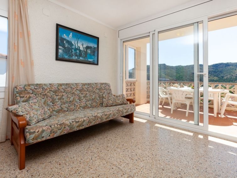 Urb. Panoramar: Casa de apartamentos "Rodes". En las afueras de la localidad, lugar tranquilo, a 300 m del mar, a 300 m de la playa. Supermercado 1 km, centro comercial 1 km, restaurante 500 m, playa de arena 300 m. Campo de golf (18 hoyos) 22 km. A tener en cuenta: sin ascensor. "Rodes II", ático de 3 estancias 60 m2 en el 2° piso. Con mobiliario sencillo y funcional: salón-comedor con mesa de comedor, TV satélite, TV digital y pantalla plana. Salida a la terraza. 1 dorm. con 1 cama de matrimonio (1 x 135 cm). 1 dorm. con 2 camas (80 cm). Pequeña cocina (4 fogones, horno). Baño/WC. Ningún tipo de calefacción. Terraza pequeña 10 m2. Muebles de terraza. Vista muy bonita al mar, al paisaje y a la localidad. El alojamiento dispone de: lavadora. Internet (Wifi, gratis). Garaje. Adecuado para familias. HUTG001308