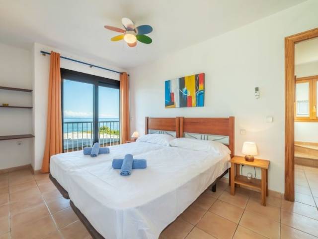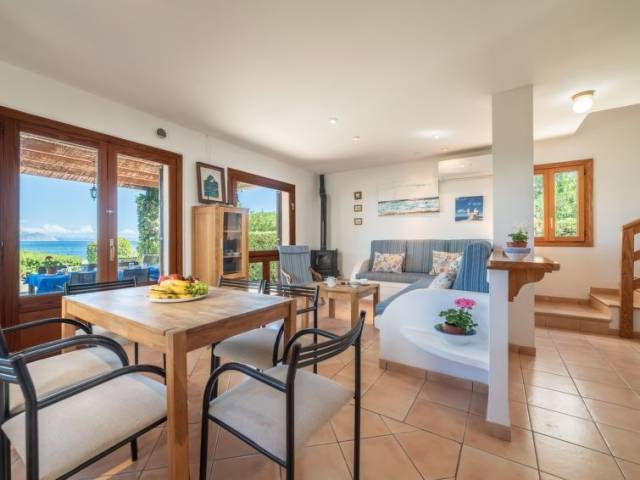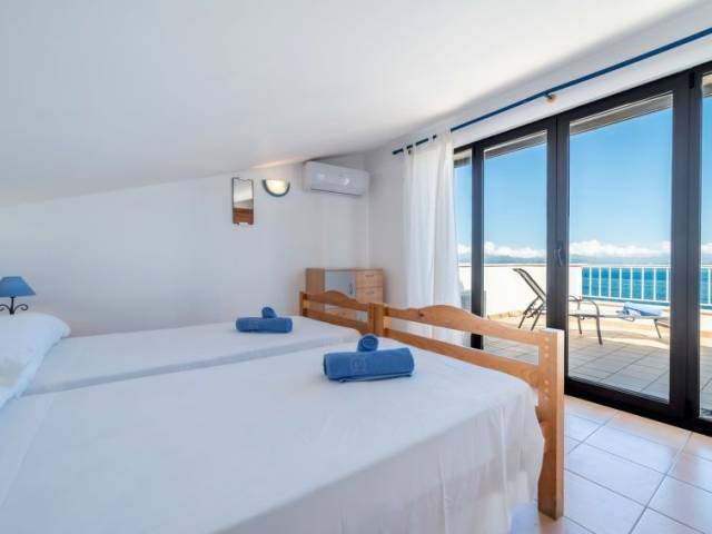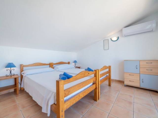 "Ran de Mar", casa 4 estancias 120 m2 en 3 plantas. Vivienda adecuada para 6 adultos. Espacioso y luminoso, con mobiliario muy funcional y agradable: salón-comedor con ventanal con TV digital, canales internacionales, estufa de lena, aire acondicionado y bomba de calor, caliente. Salida a la terraza-jardín. Cocina abierta (horno, lavavajillas, 3 placas de vitrocerámica, tostadora, hervidor de agua eléctrico, microondas, congelador, cafetera eléctrica) con barra americana. Ducha/WC. Planta superior: 1 dorm. doble, grande con puerta corredera Vestidor con 1 cama de matrimonio (180 cm, 200 cm de longitud), aire acondicionado y bomba de calor, caliente. Salida al balcón. 1 dorm. doble con puerta corredera con 2 camas (90 cm, 190 cm de longitud), aire acondicionado y bomba de calor, caliente. Salida al balcón. Ducha/WC. Planta superior 2: 1 dorm. doble, abuhardillado grande con puerta corredera, ventanal con 2 camas (90 cm, 190 cm de longitud), aire acondicionado y bomba de calor, caliente. Salida a la terraza. Balcón, terraza, terraza-jardín grande, césped, cenador. Muebles de terraza, muebles de balcón, barbacoa, tumbonas, porche. Vista panorámica espléndida al mar, a las montañas y a la bahía. El alojamiento dispone de: lavadora, plancha, trona, cuna, secador de pelo. Internet (Wifi, gratis). Adecuado para familias. ETV1056