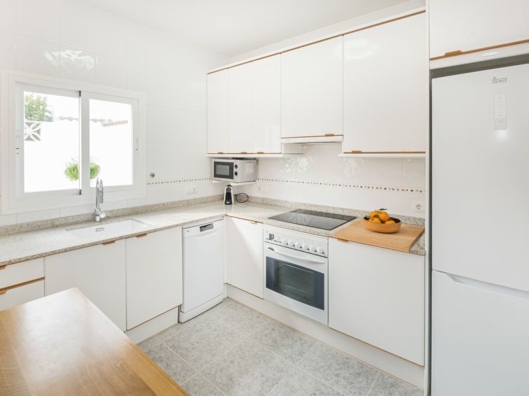 "Casa Sa Marina", casa 3 estancias 80 m2, en la planta baja, orientación norte. Vivienda adecuada para 4 adultos + 1 niño. Con mobiliario confortable y bonito: salón-comedor con baño/ducha/bidet/WC. Salida a la terraza, orientación norte y orientación noreste. 1 dorm. doble con ventanal con 1 cama de matrimonio (1 x 150 cm, 190 cm de longitud), baño/bidet/WC. 1 dorm. doble con ventanal con 1 cama de matrimonio (1 x 150 cm, 190 cm de longitud), calefacción eléctrica y aire acondicionado. 1 dorm. con ventanal orientación norte y orientación noreste con 1 cama (90 cm, 200 cm de longitud), aire acondicionado y bomba de calor, caliente. Cocina abierta (4 fogones, horno, 1 Placas de inducción, microondas) con barra americana, calefacción eléctrica y aire acondicionado. Salida a la terraza, orientación norte y orientación noreste. Aire acondicionado, aire caliente. Muebles de terraza, tumbonas, rincón para sentarse. Vista al mar y a las montañas. El alojamiento dispone de: lavadora, secadora, trona, cuna hasta 2 años, secador de pelo. Internet (Wifi, gratis). Adecuado para familias. ETV13529