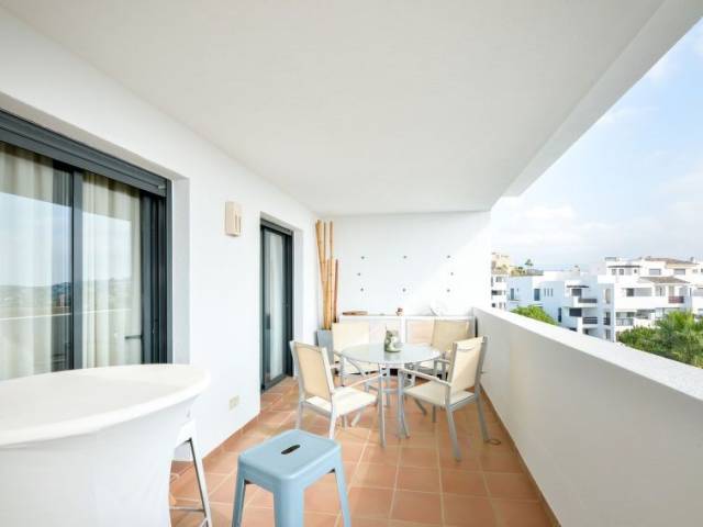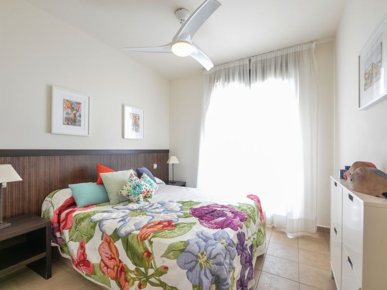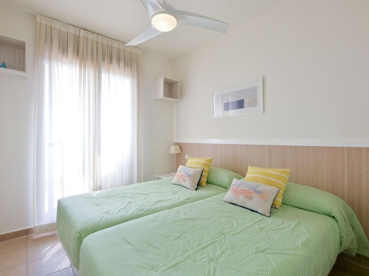 "Alamar", apartamento de 3 estancias 70 m2 en el 3° piso. Con mobiliario confortable: 1 dorm. con 2 camas (90 cm, 190 cm de longitud), baño/bidet/WC (privado) ventilador. Salida a la terraza. 1 dorm. con 2 camas (90 cm, 190 cm de longitud), ventilador. Salón-comedor con TV digital. Cocina (horno, lavavajillas, 4 placas de vitrocerámica, tostadora, hervidor de agua eléctrico, microondas, congelador, cafetera eléctrica). Ducha/WC. Aire acondicionado, aire caliente. Terraza 15 m2 parcialmente cubierta. Muebles de terraza. Vista parcial al mar. El alojamiento dispone de: lavadora, plancha, secador de pelo. Internet (Wifi, gratis). Plaza de aparcamiento n. 21. 1 mascota / perro. VFT/MA/08590